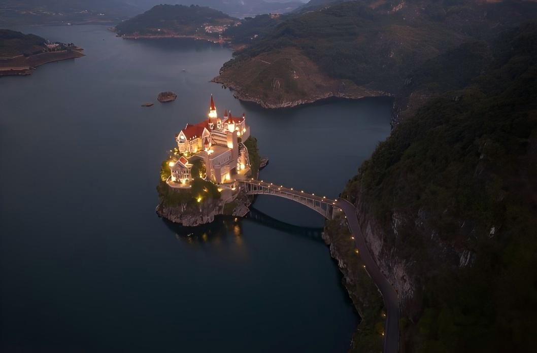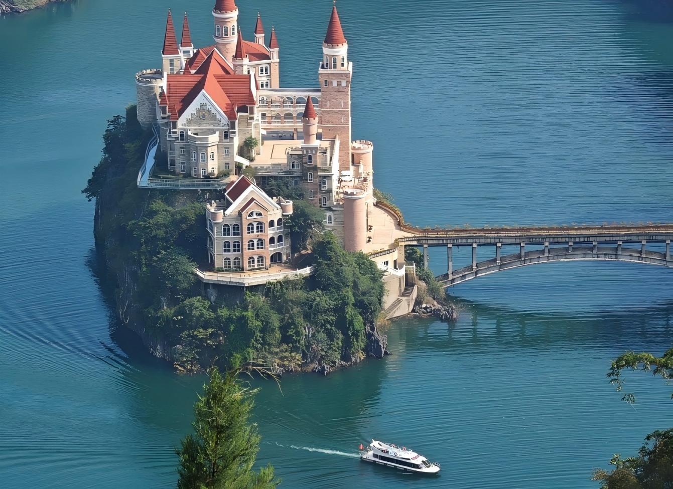 "ทะเลสาบวันเฟิง หรือที่รู้จักกันในนาม "สามหุบเขาเล็ก" การล่องเรือบนผืนน้ำของทะเลสาบแห่งนี้ จะพาคุณผ่านทิวทัศน์ที่สลับกันระหว่างผืนน้ำกว้างใหญ่ที่ส่องประกายระยิบระยับ และ "ทางน้ำ" ที่แคบซึ่งขนาบข้างด้วยยอดเขาสูงตระหง่าน น้ำสีเขียวมรกตของทะเลสาบแห่งนี้เหมือนกับอัญมณีที่งดงาม"