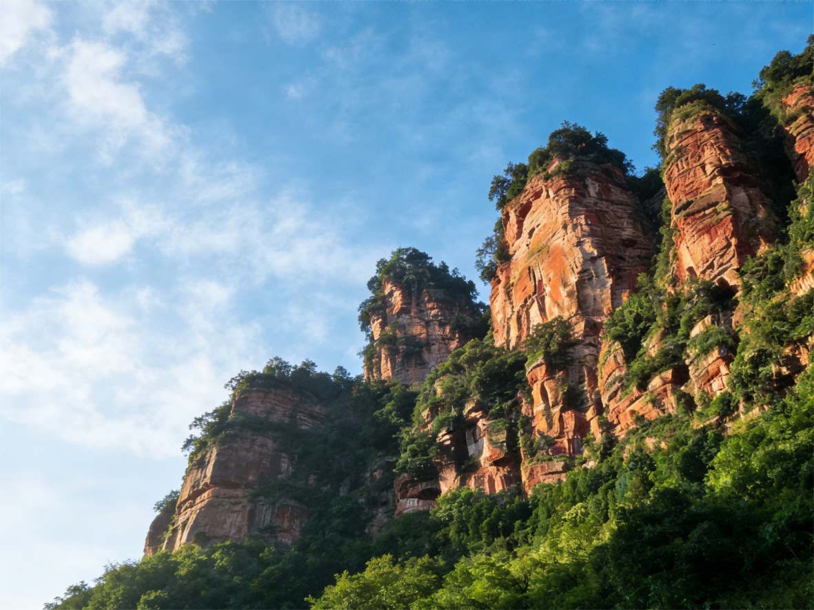 "ใต้หน้าผาแดงดั่งเปลวไฟ ฉันเงยหน้ามองยอดเขาแดนเซียที่สูงตระหง่าน ราวกับสัมผัสกับชีพจรที่ร้อนแรงของโลก"