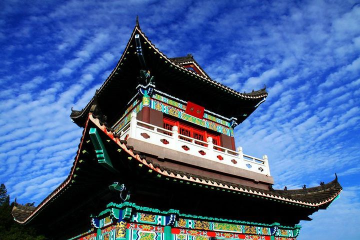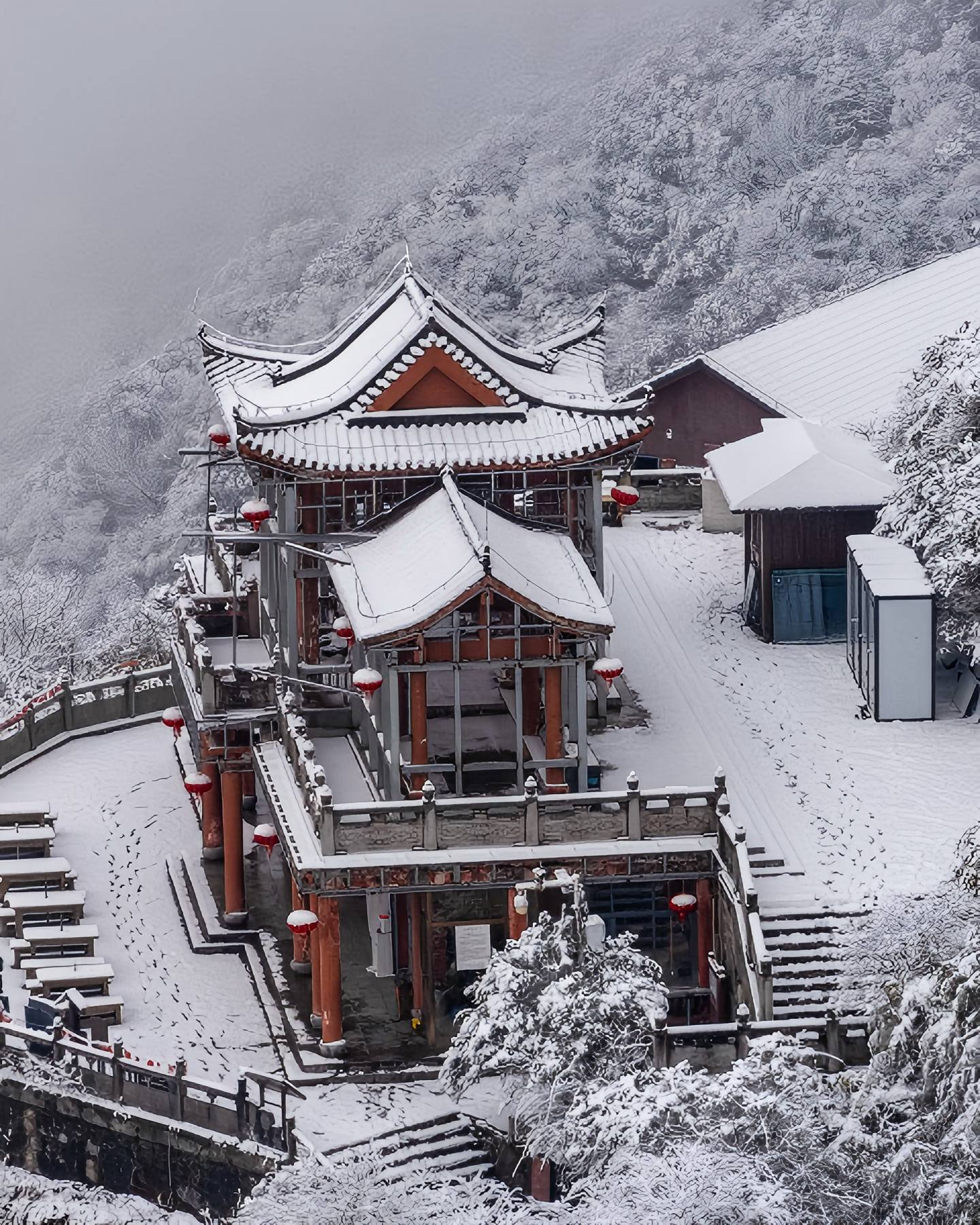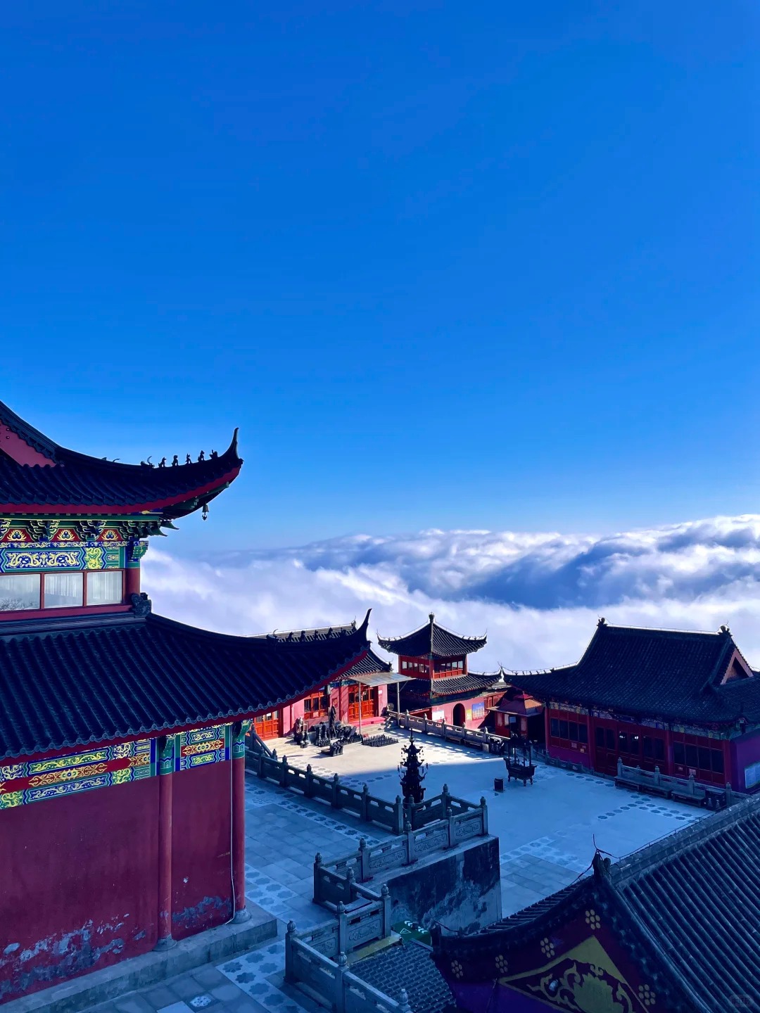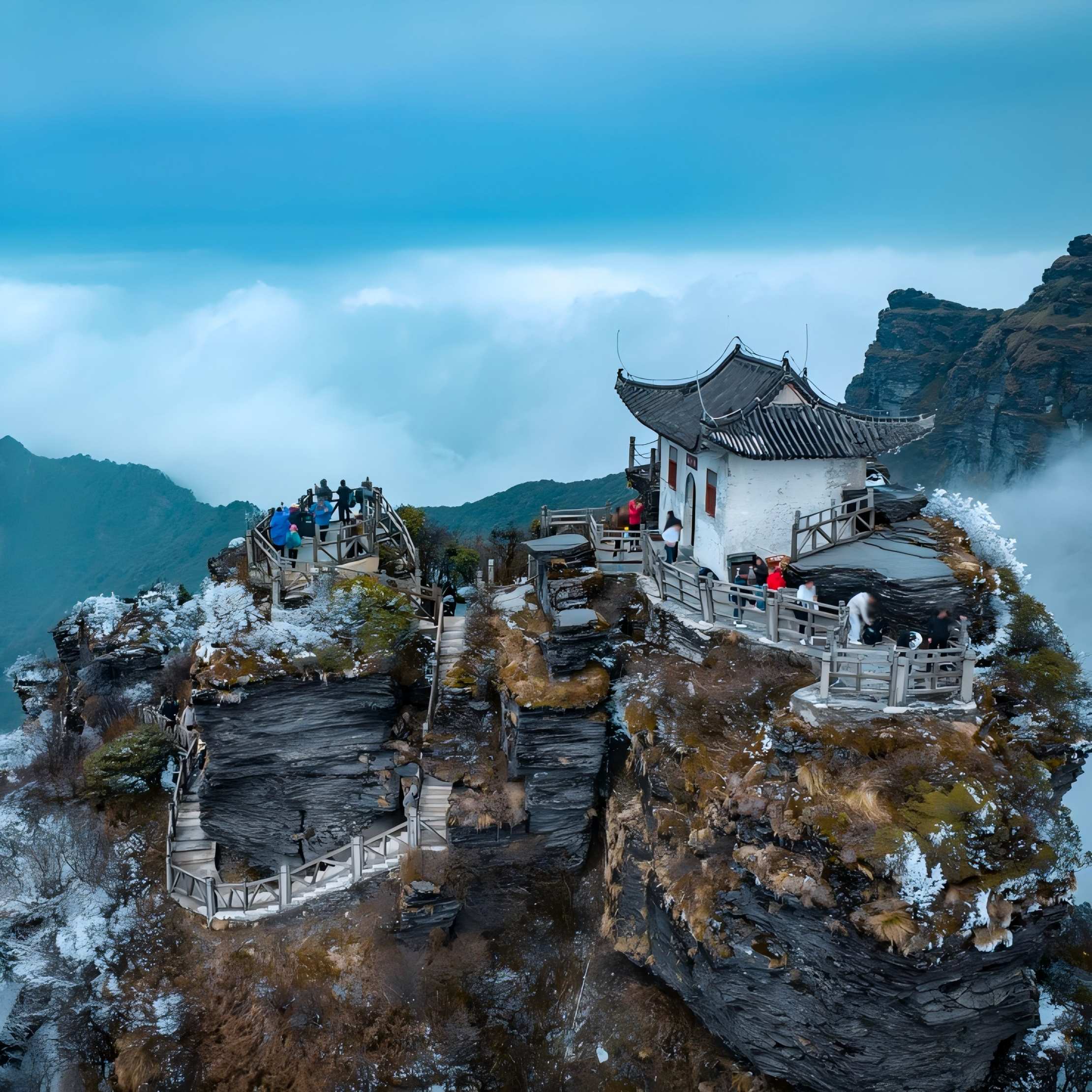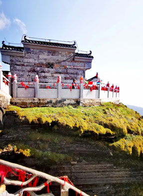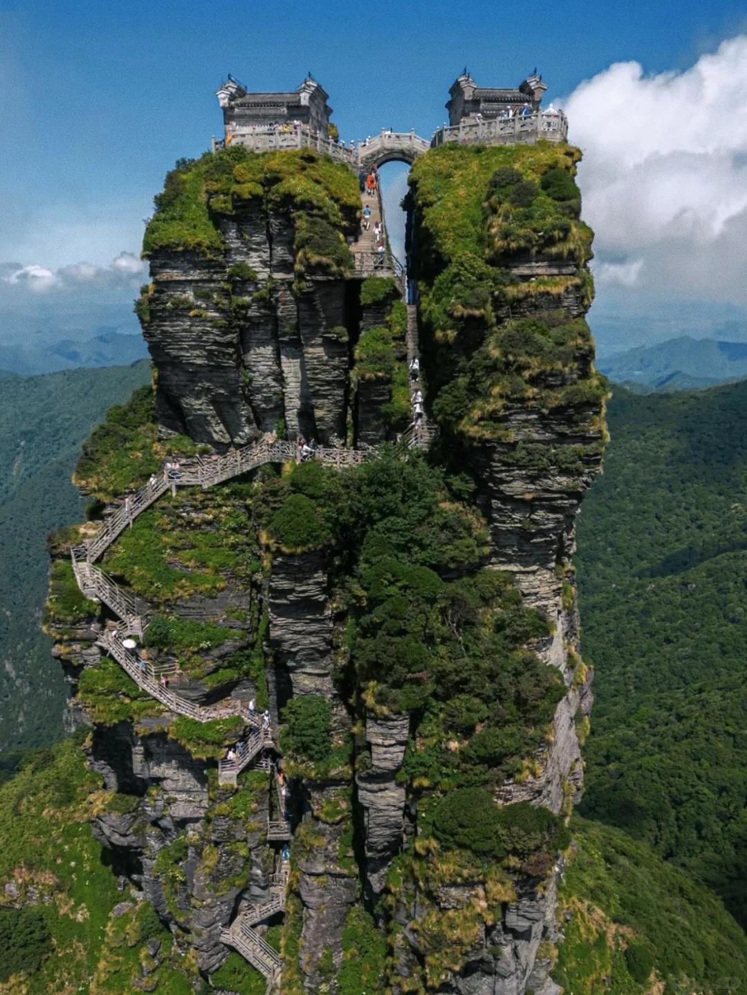 เป็นมรดกโลกทางธรรมชาติและแหล่งท่องเที่ยวระดับ 5A ของประเทศ ได้รับสมญานามว่า “นครแห่งท้องฟ้า” เป็นยอดเขาหลักของเทือกเขาอู่หลิง อีกทั้งยังเป็นธรรมสถานของพระเมตไตรยโพธิสัตว์ ยังได้รับการยกย่องร่วมกับเขาอู่ไถ่และเขาง้อไบ๊ว่าเป็นหนึ่งในห้าภูเขาศักดิ์สิทธิ์ทางพุทธศาสนาของจีน จักรพรรดิว่านลี่แห่งราชวงศ์หมิงเคยพระราชทานศิลาจารึกเป็นกรณีพิเศษ และสถาปนาที่แห่งนี้ให้เป็น “บรรพชนแห่งขุนเขาเลื่องชื่อในใต้หล้า” พลังสรรค์สร้างอันน่าพิศวงของธรรมชาติ และอารยธรรมพุทธศาสนาที่สืบทอดมานับพันปี ได้หลอมรวมกันอย่างกลมกลืน ณ สถานที่แห่งนี้ เมื่อคุณก้าวขึ้นสู่ยอดเขาทองเมฆาแดง เบื้องล่างคือทะเลเมฆที่โหมพลิ้ว สะพานลอยฟ้าที่เชื่อมวัดโบราณอายุกว่าร้อยปีทั้งสองฝั่งปรากฏเลือนรางท่ามกลางสายหมอก ณ ขณะนั้น ราวกับได้ยืนอยู่บนพรมแดนอัศจรรย์ระหว่างโลกมนุษย์กับแดนเซียน