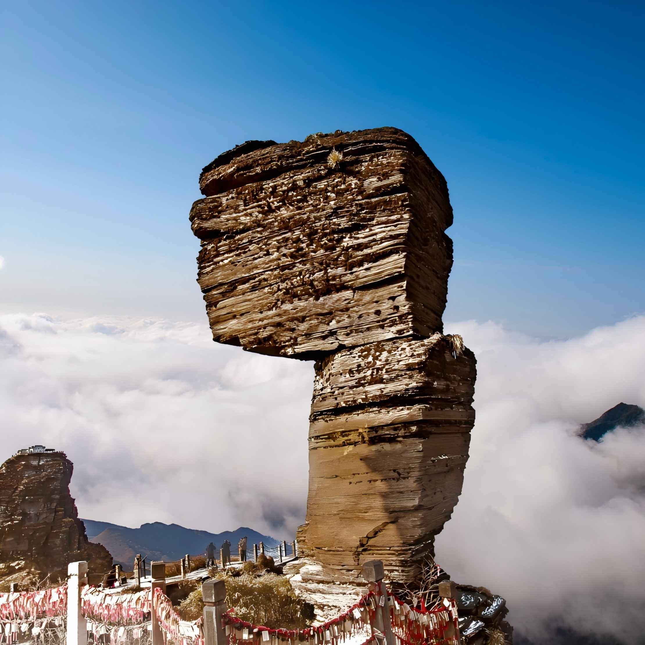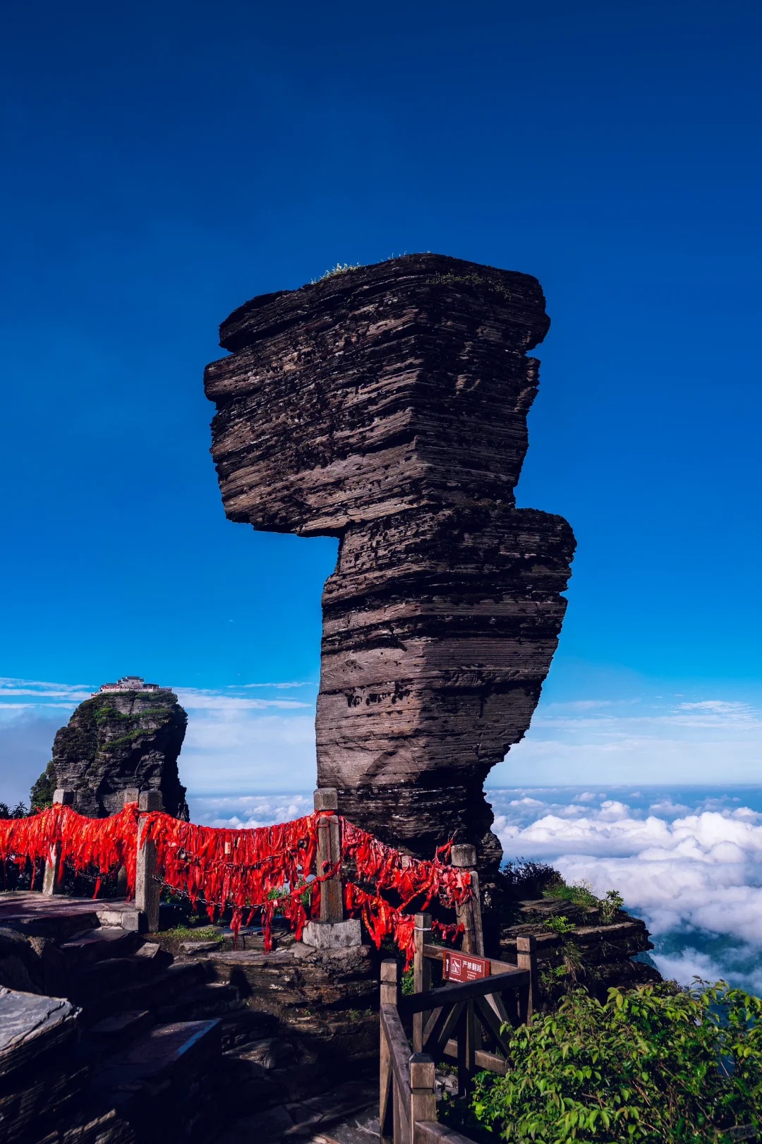 ยอดเขาทองเมฆาแดงหรือที่เรียกอีกชื่อว่ายอดเขาทองใหม่ เป็นทัศนียภาพมหัศจรรย์อันดับหนึ่งของเขาฟ่านจิ้ง ตัวภูเขาตั้งตระหง่านแข็งแกร่ง พุ่งสูงเด่นราวเสาค้ำฟ้า