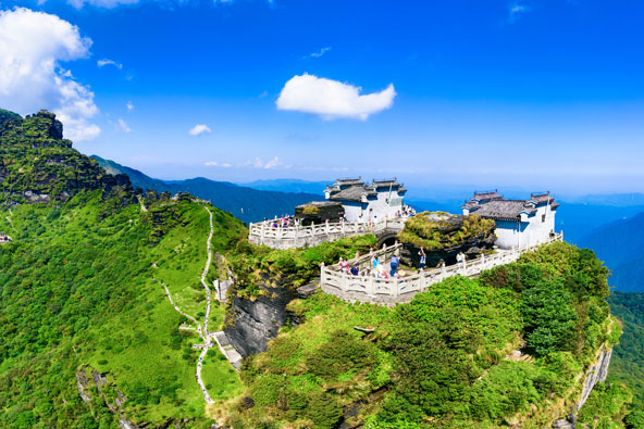 ในฐานะมรดกโลกสองสถานะทั้งด้านวัฒนธรรมและธรรมชาติ เขาฟ่านจิ้งไม่เพียงเป็นแดนลี้ลับของระบบนิเวศเท่านั้น หากแต่ยังเป็นภูเขาศักดิ์สิทธิ์ทางพุทธศาสนาที่มีจุดกำเนิดตั้งแต่สมัยราชวงศ์ถังรุ่งเรือง ยังได้รับการยกย่องด้วยเกียรติยศสูงสุดว่าเป็น “บรรพชนแห่งขุนเขาเลื่องชื่อในใต้หล้า” ตั้งแต่อดีตกาล