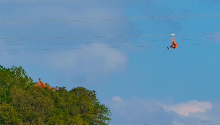 สัมผัสการโหนสลิงลอยฟ้าความยาวราว 400 เมตร ทะยานข้ามหุบเขา ชมทัศนียภาพภูเขาและสายน้ำของเทียนเหอถานจากมุมสูงในมุมมองที่แตกต่าง