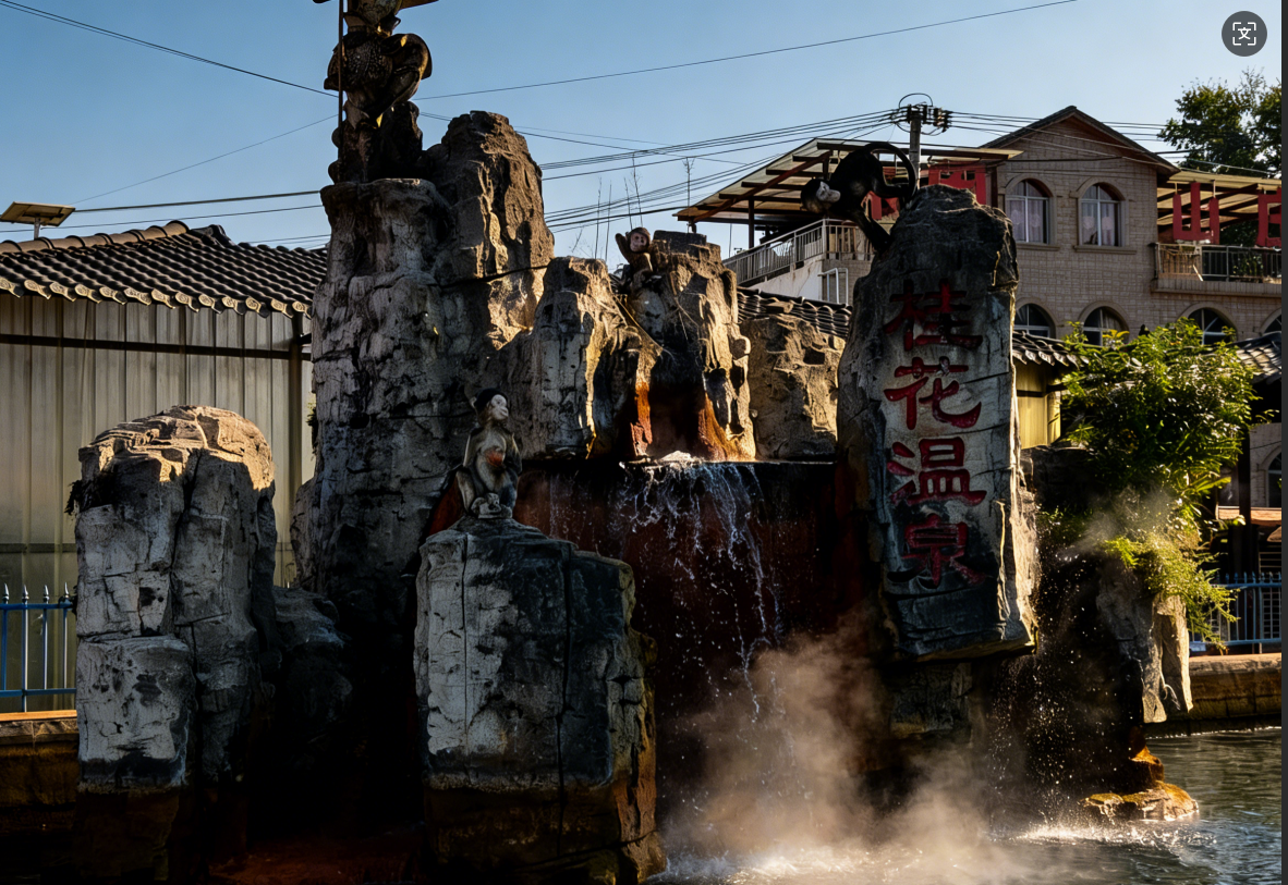 เมื่อเข้าสู่พื้นที่ทัศนียภาพอันงดงาม กลิ่นหอมอ่อน ๆ ของดอกไม้จะอบอวลไปทั่วอากาศ ที่นี่มีสระว่ายน้ำหลากหลายรูปแบบที่ออกแบบมาอย่างพิถีพิถันเพื่อตอบสนองความต้องการที่แตกต่างกัน: สระคลื่นที่เต็มไปด้วยความตื่นเต้นมอบความสนุกสนานในการโต้คลื่น ส่วนสระน้ำเพื่อสุขภาพที่เงียบสงบเชิญชวนให้คุณผ่อนคลายด้วยดวงตาที่ปิดสนิท สระสำหรับคู่รักที่แสนโรแมนติกและสระสำหรับครอบครัวที่เต็มไปด้วยความสนุกสนานก็พร้อมรองรับความต้องการที่หลากหลาย ห้องเปลี่ยนเสื้อผ้าที่ครบครัน พื้นที่พักผ่อน และตัวเลือกการรับประทานอาหารและที่พักโดยรอบช่วยให้มั่นใจได้ถึงประสบการณ์วันหยุดที่ราบรื่นและไร้กังวล ในช่วงไม่กี่ปีที่ผ่านมา การเปิดใช้ทางด่วนกั่วจิน-กุ้ยซุยได้ช่วยปรับปรุงการเข้าถึงบ่อน้ำพุร้อนอย่างมาก ทำให้ที่นี่กลายเป็นจุดแวะสำคัญในเส้นทางสุขภาพฤดูใบไม้ร่วง-ฤดูหนาวอย่างเป็นทางการของเมืองผีเจีย ผู้มาเยือนหลั่งไหลมาที่นี่เพื่อคลายความหนาวเย็นและเพลิดเพลินกับความสุขของการ "แช่น้ำพุร้อนพร้อมชมวิวทิวทัศน์" หลังจากแช่น้ำ อย่าลืมลิ้มลองบะหมี่เนื้อแกะจินซาท้องถิ่นที่มีชื่อเสียงในด้านรสชาติเผ็ดและเค็มกลมกล่อม เพื่อปิดท้ายการเดินทางที่อบอุ่นนี้อย่างสมบูรณ์แบบ