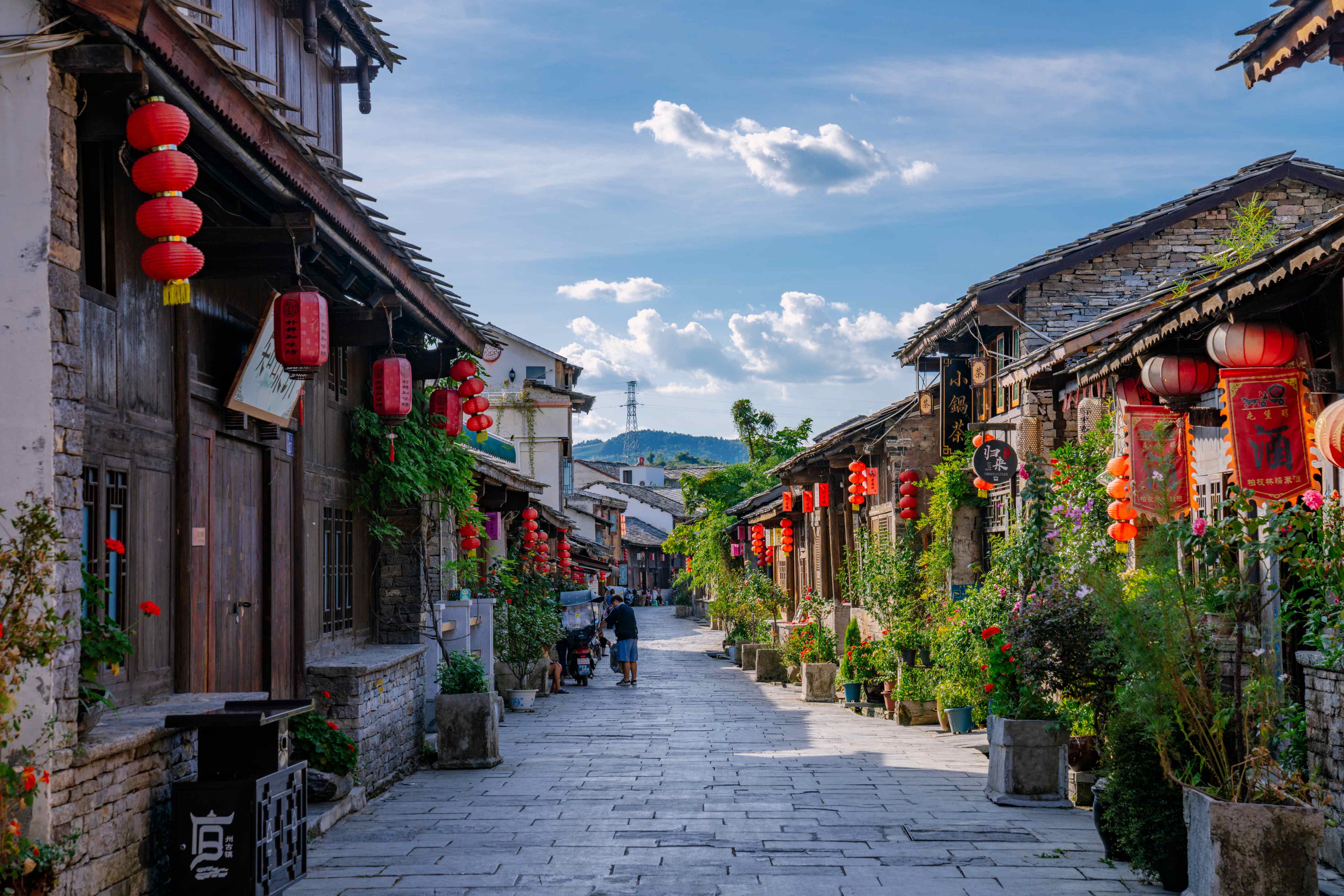เดินทอดน่องไปตามตรอกซอกซอยที่ปูด้วยหินสีฟ้า วัฒนธรรมตุนปูอันเป็นเอกลักษณ์สัมผัสได้อย่างชัดเจน สถาปัตยกรรมของเมืองผสมผสานระหว่างสไตล์เจียงฮุ่ย-ฮุยโจวกับบ้านเรือนหินอันเป็นเอกลักษณ์ของกุ้ยโจว โดดเด่นด้วยประตูทางเข้าที่ประดับตกแต่งอย่างวิจิตรและหน้าต่างไม้แกะสลักลวดลายที่แฝงความงามแบบเรียบง่าย ผู้คนท้องถิ่นยังคงสืบสานประเพณีโบราณ เช่น ละครพื้นบ้านตุนปูและภาษาถิ่นของตน สร้างชีวิตชีวาให้กับเมืองอย่างเต็มเปี่ยม การบูรณาการการท่องเที่ยวเชิงวัฒนธรรมอย่างลึกซึ้งช่วยเพิ่มมิติประสบการณ์: นักท่องเที่ยวสามารถมีส่วนร่วมกับงานฝีมือมรดกทางวัฒนธรรมที่จับต้องไม่ได้ เช่น การแกะสลักไม้อันชุน การทำผ้าบาติก และการทำกระดาษแบบดั้งเดิม หรือดื่มด่ำไปกับจังหวะของฆ้องและกลองใน "โอเปร่าดินแห่งตุนปู" ที่ปลุกจิตวิญญาณของยุคหมิง