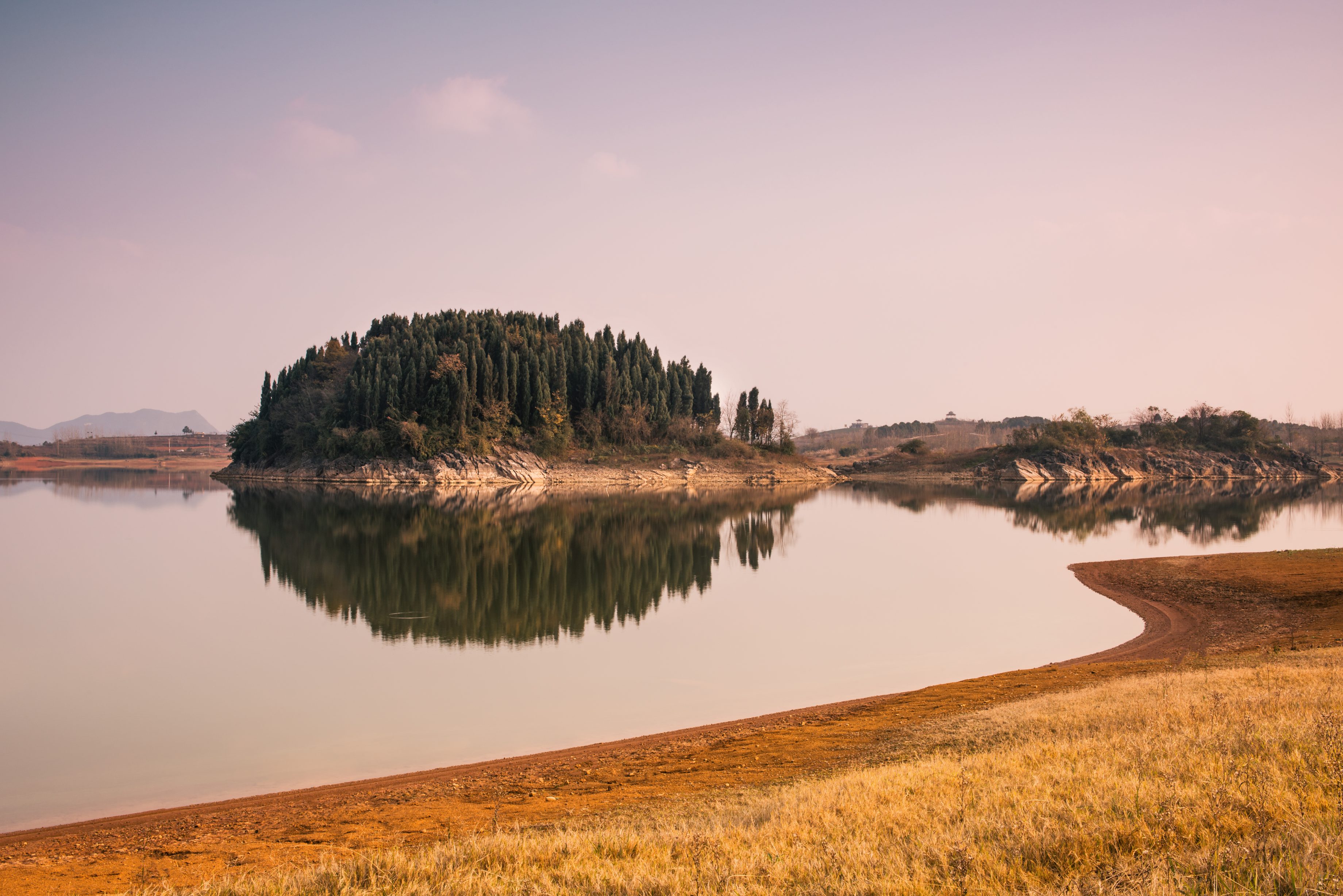 ทะเลสาบกว้างใหญ่แห่งนี้ครอบคลุมพื้นที่ 57.2 ตารางกิโลเมตร ประดับประดาด้วยเกาะเล็กเกาะน้อย 178 เกาะที่มีขนาดแตกต่างกัน ราวกับดวงดาวที่กระจัดกระจายอยู่ทั่วไป ทะเลสาบแห่งนี้แสดงให้เห็นถึงทัศนียภาพที่งดงามของภูเขาหินปูนที่แปลกตา ซึ่งก่อตัวเป็นทิวทัศน์ที่งดงามของ "ภูเขาในทะเลสาบ เกาะในทะเลสาบ ถ้ำในเกาะ และทะเลสาบในถ้ำ" ซึ่งได้รับการยกย่องว่าเป็น "สี่สิ่งมหัศจรรย์ของเมเปิ้ลแดง" ล่องเรือผ่านน่านน้ำเหล่านี้ ไม่เพียงแต่จะได้ชื่นชมความงดงามของหุบเขาที่งดงามราวกับ "สามหุบเขาเล็ก" เท่านั้น แต่ยังสามารถสำรวจถ้ำที่เข้าถึงได้ด้วยเรือ เช่น "ถ้ำนายพล" และตื่นตาตื่นใจกับน้ำตกหินงอกระยิบระยับภายในได้อีกด้วย