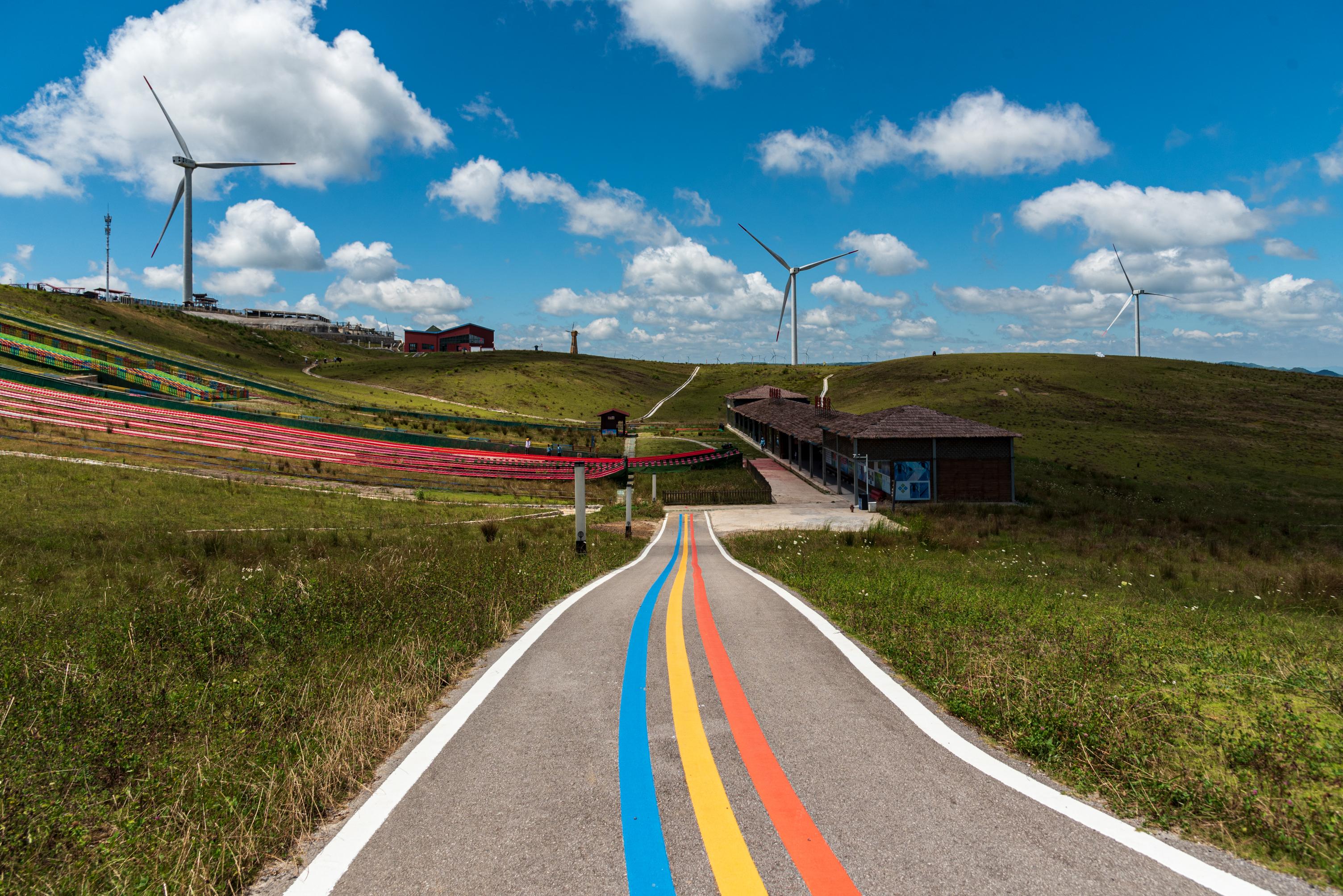ลังล่องลอยเข้าสู่ก้อนเมฆ เมื่อถึงยอดเขา คุณจะได้รับการต้อนรับด้วยทุ่งหญ้าสีเขียวที่สลับซับซ้อน กังหันลมสีขาวที่หมุนอย่างสง่างาม และทะเลดอกไม้หายากที่หายากซึ่งมีพื้นที่หลายร้อยเอเคอร์ของดอกเกซังที่พันกันกับดอกอาซาเลียสีขาว