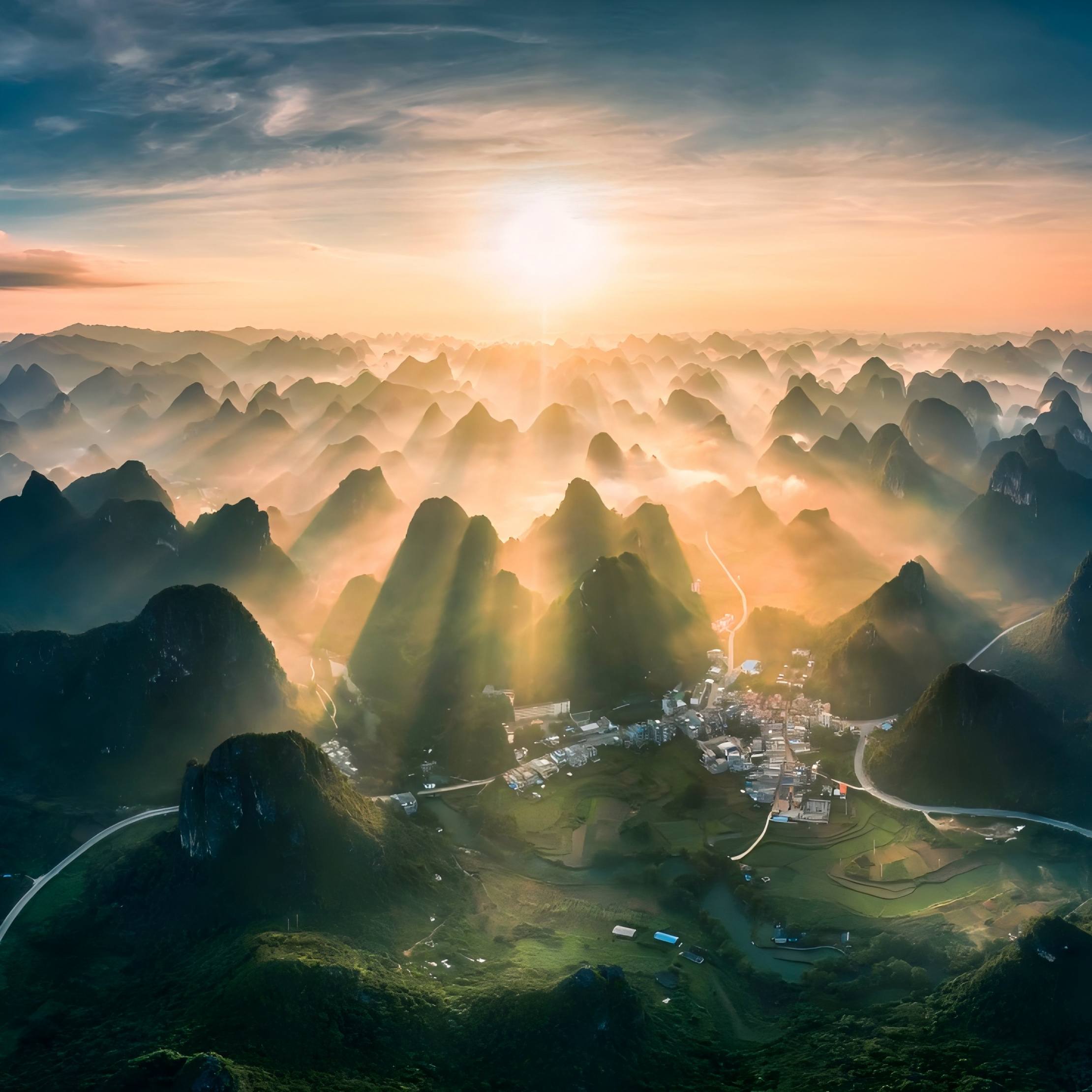 "เมื่อขึ้นไปยังจุดชมวิว ยอดเขาที่ซ้อนทับกันจะปรากฏและหายไปในหมอกยามเช้า เมื่อแสงอาทิตย์ส่องทะลุเมฆและโปรยแสงสีทองลงมา อาณาจักรหินปูนทั้งหมดจะตื่นขึ้นต่อหน้าต่อตาคุณ"