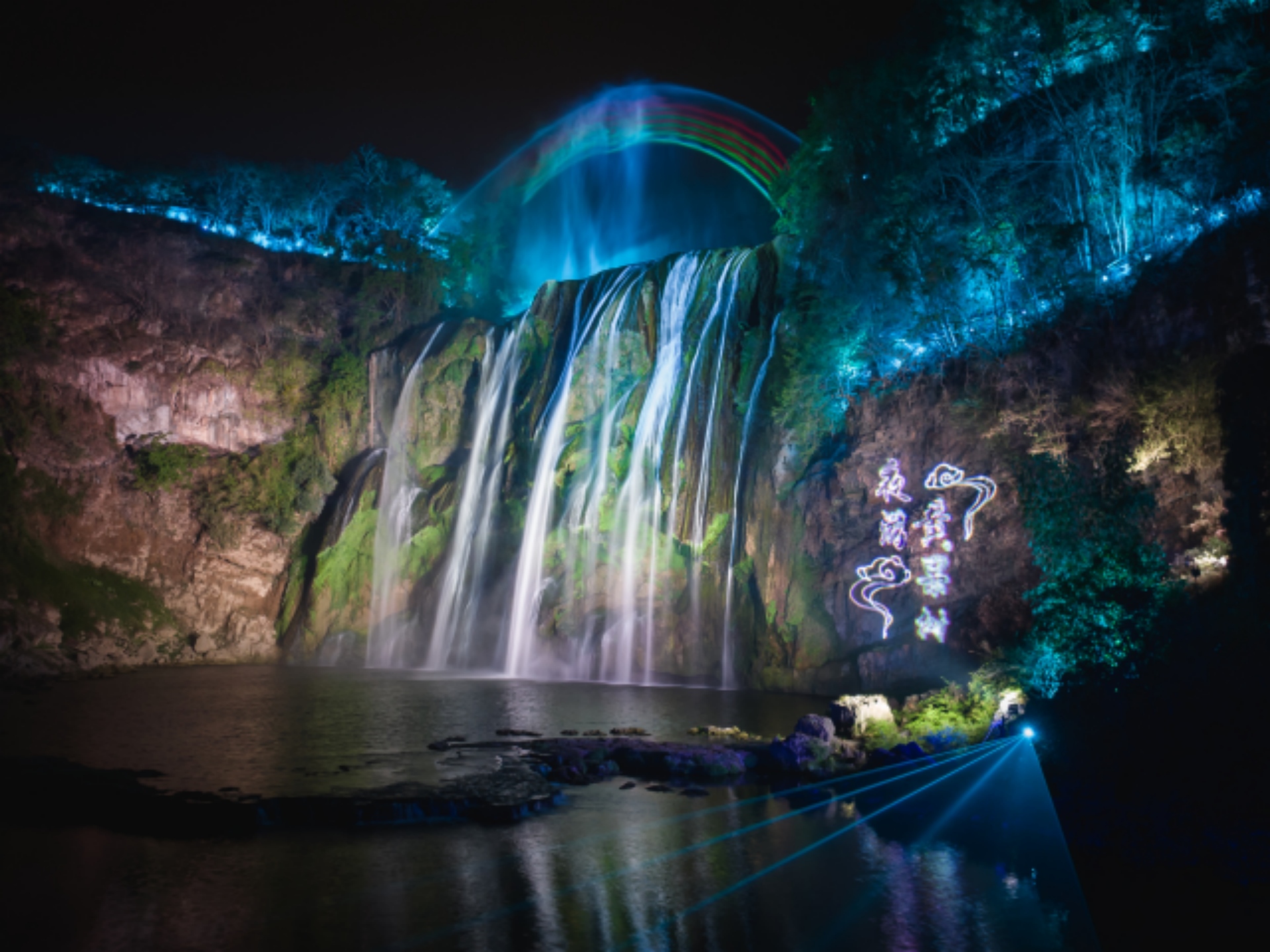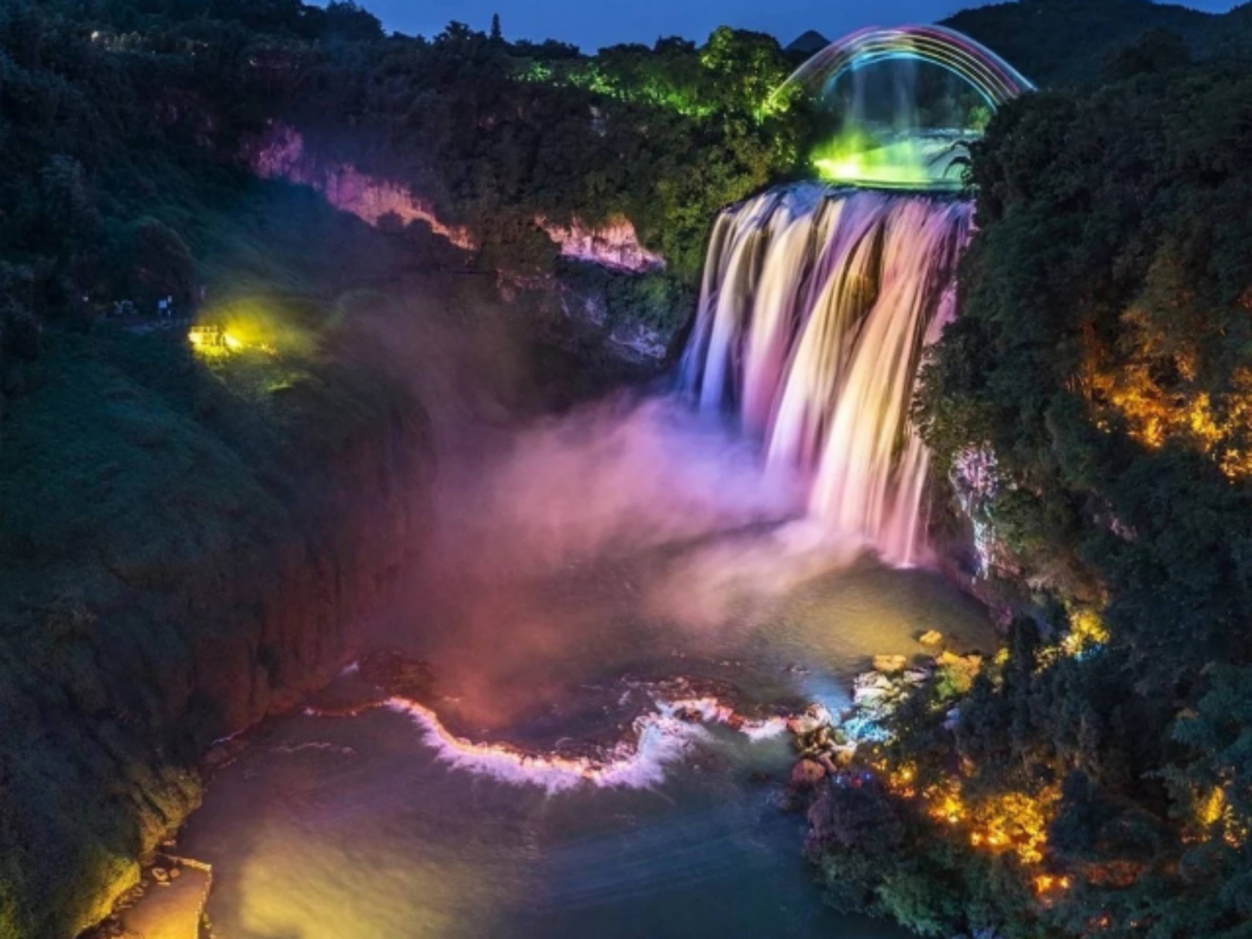 「ท่องน้ำตกหวงกั่วซู่ยามราตรี | ความงดงามของธรรมชาติที่ถักทอด้วยแสงและเงา」