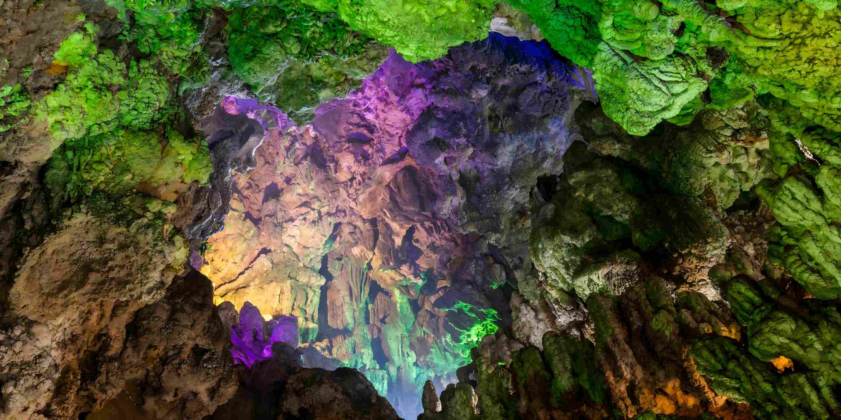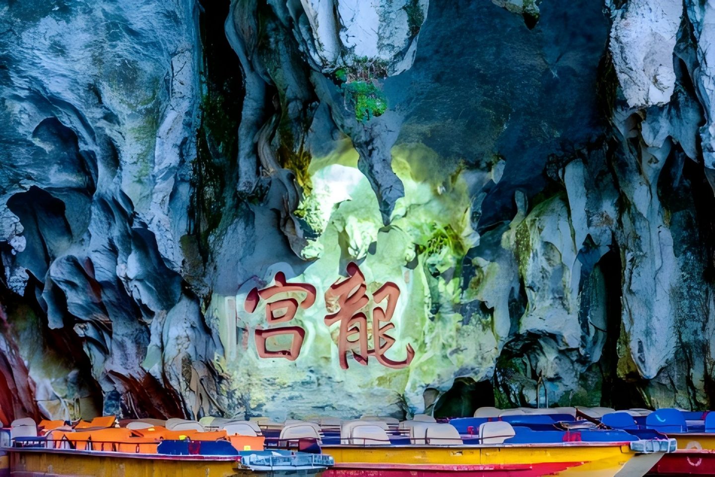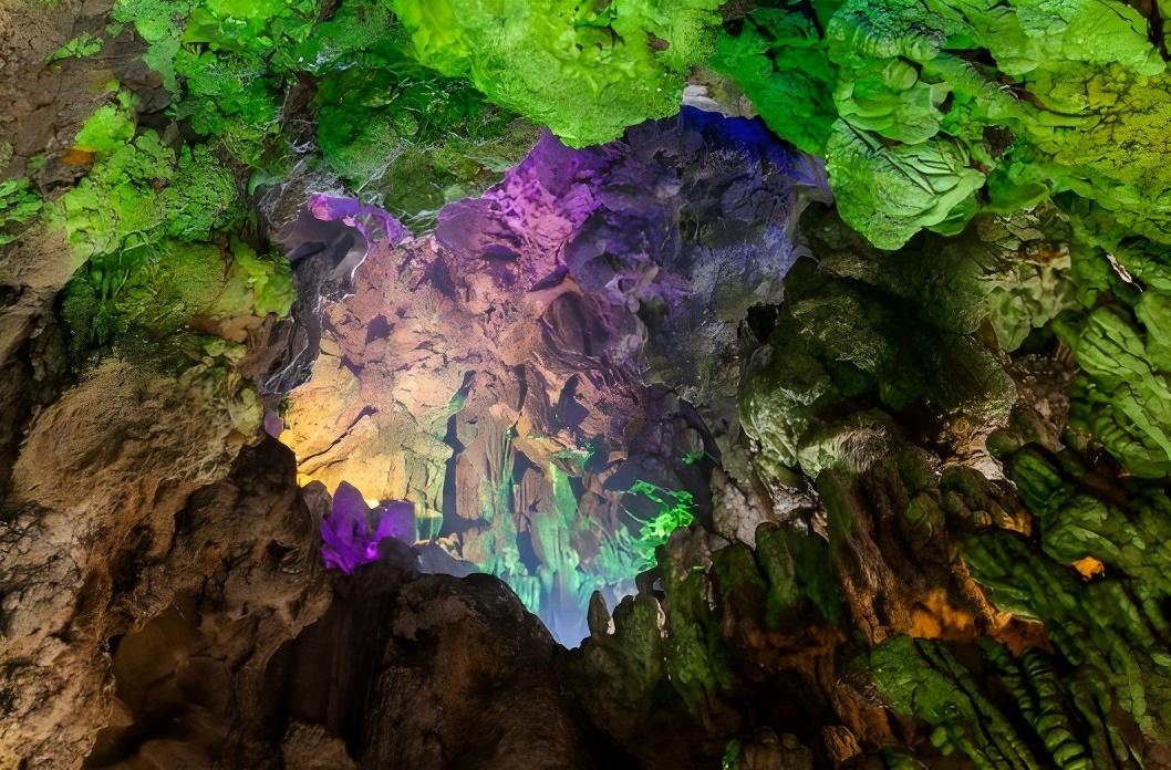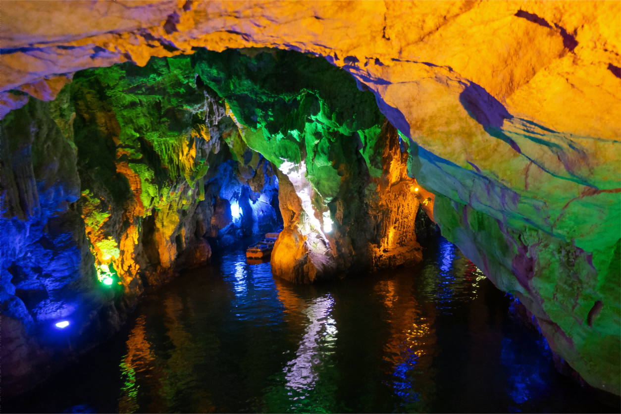 วังมังกรมีระบบแม่น้ำใต้ดินที่อุดมสมบูรณ์ แม่น้ำลับหลายสายเชื่อมโยงถ้ำคาสต์นับไม่ถ้วนเข้าด้วยกัน ก่อเกิดเป็นกลุ่มถ้ำคาสต์ทั้งน้ำและบกที่ใหญ่และมีจำนวนมากที่สุด ภายในถ้ำธารน้ำ หินงอกและหินย้อยหลากรูปทรงส่องประกายใต้แสงไฟหลากสี เปล่งสีสันตระการตา แปรเปลี่ยนไม่สิ้นสุด ชวนให้ตื่นตาตื่นใจละลานตา -