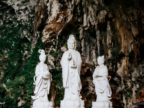 "ใต้แสงสว่างของโคมไฟ ผ้าม่านหินที่แข็งตัวเป็นคริสตัลผ่านกาลเวลาหลายพันปี ส่องแสงเหมือนหยกและบัว เมื่อฉันเอื้อมมือไปสัมผัสผิวหินที่ชื้น ฉันเหมือนได้ยินเสียงกระซิบยาวของกาลเวลา น้ำหยดผ่านหิน"