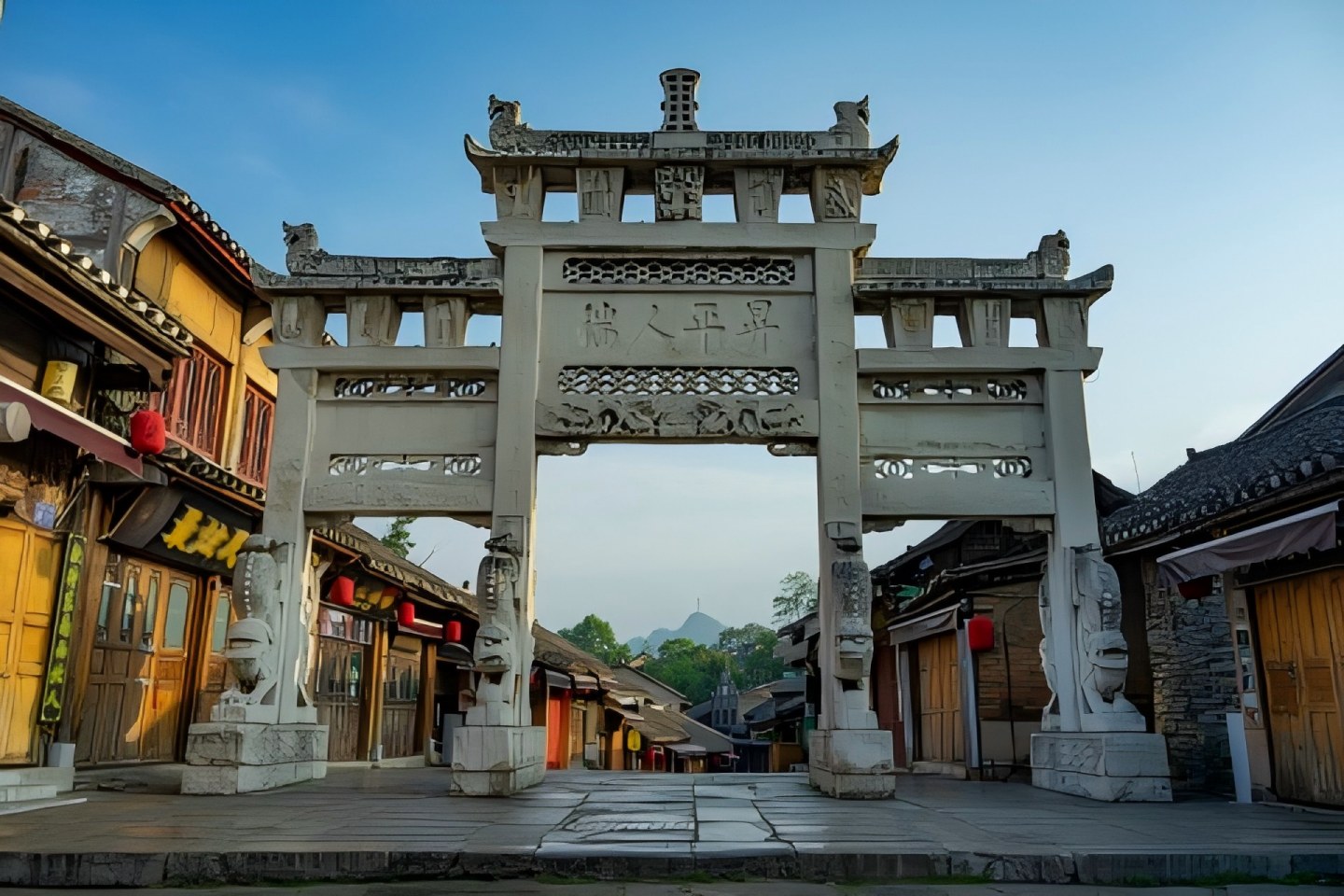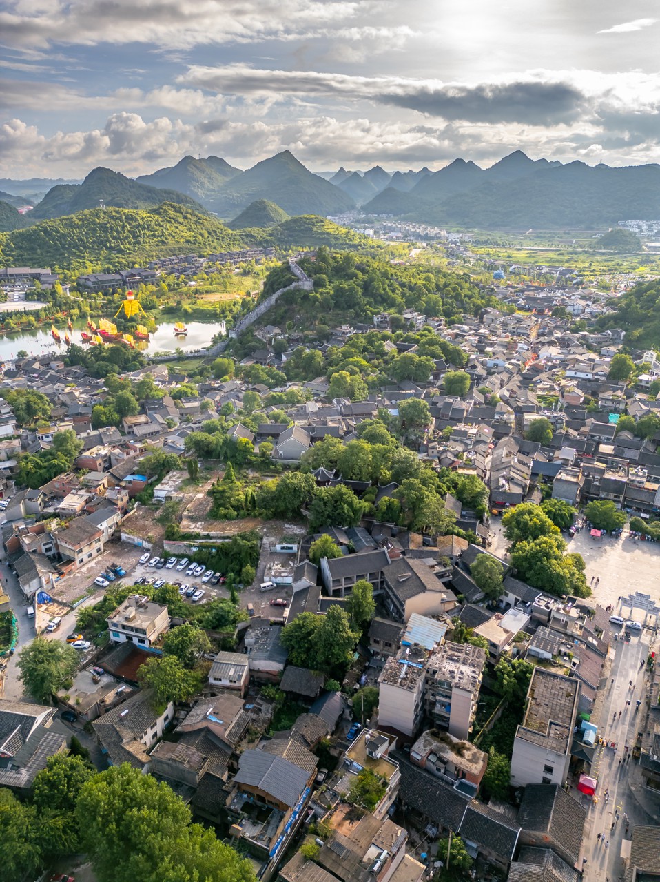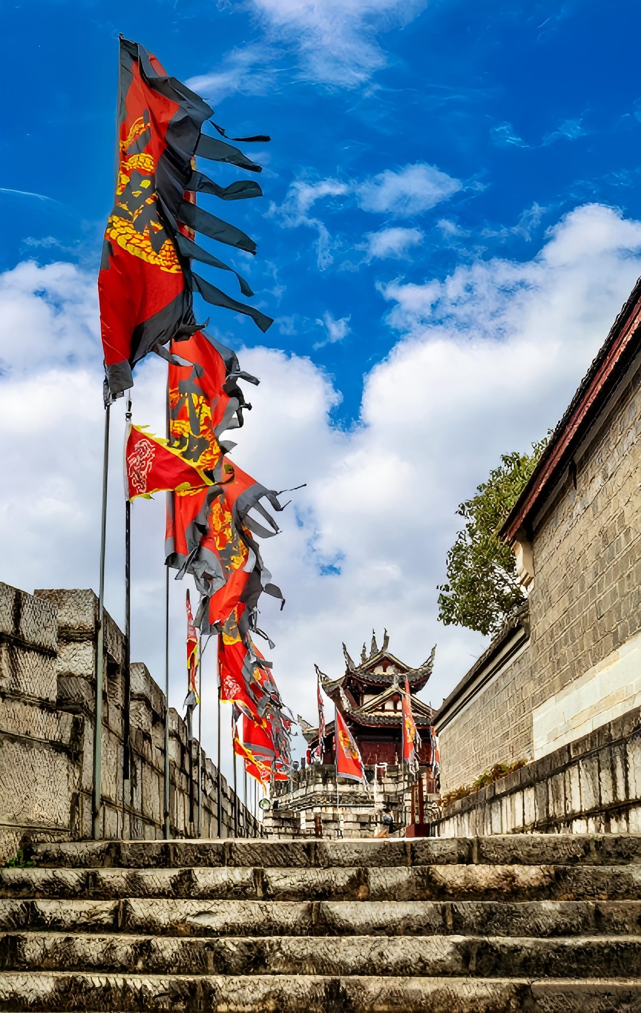 ประตูเมืองทิศเหนือขึ้นสู่หอประตูสามารถมองเห็นทิวทัศน์เมืองโบราณได้ทั่วทั้งเมือง ท่ามกลางกระเบื้องสีครามและกำแพงหิน เก็บซ่อนเสียงสะท้อนแห่งกาลเวลา