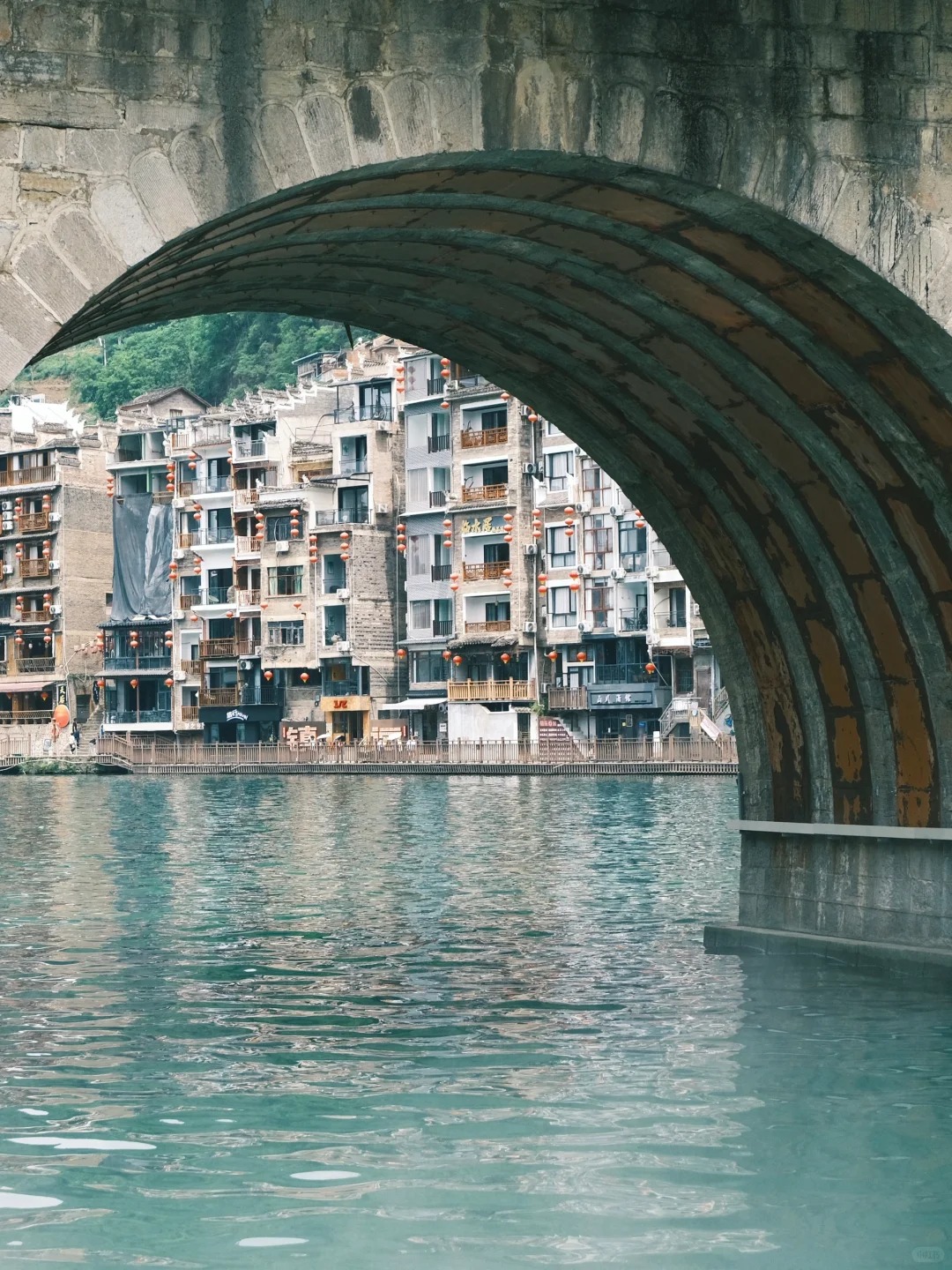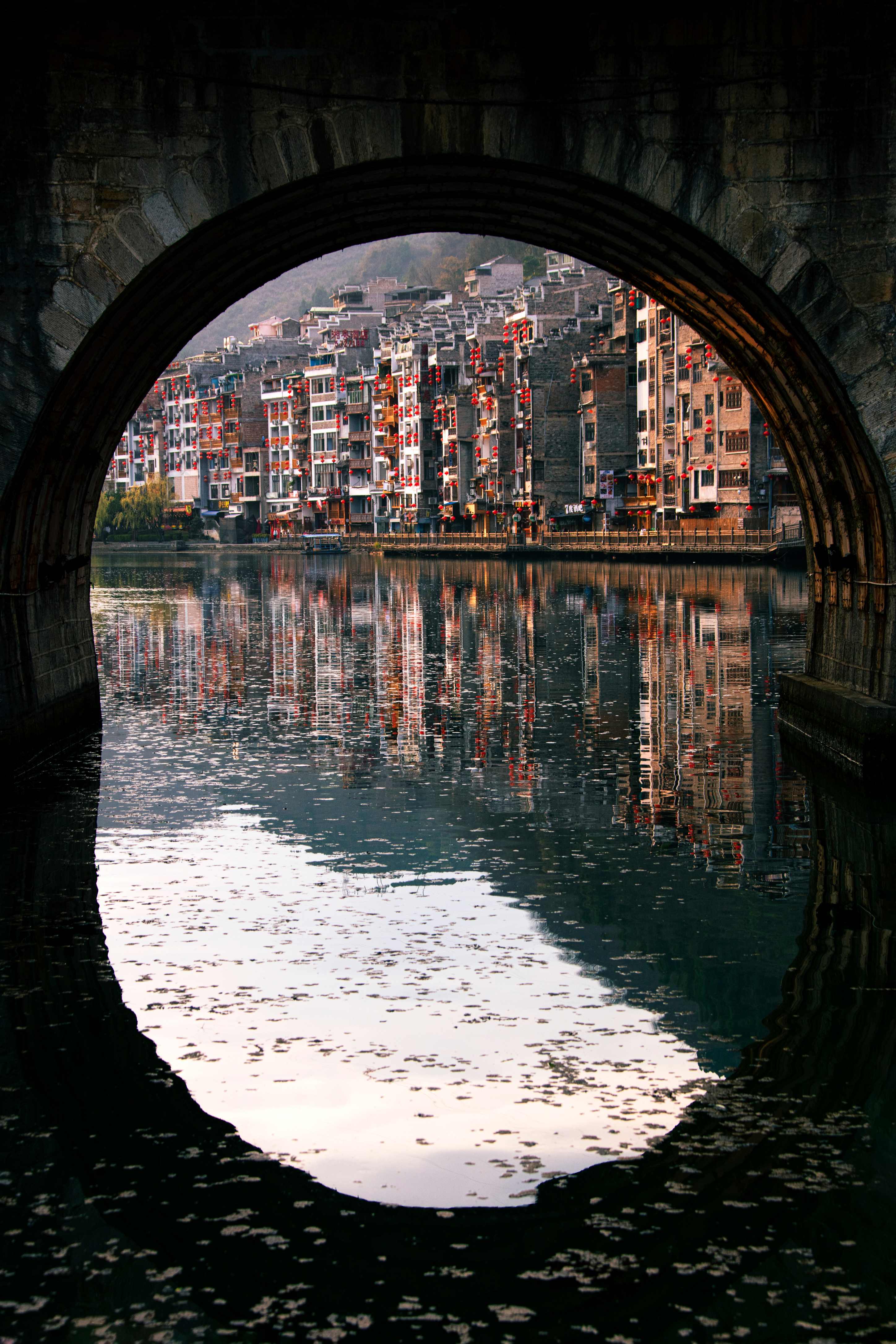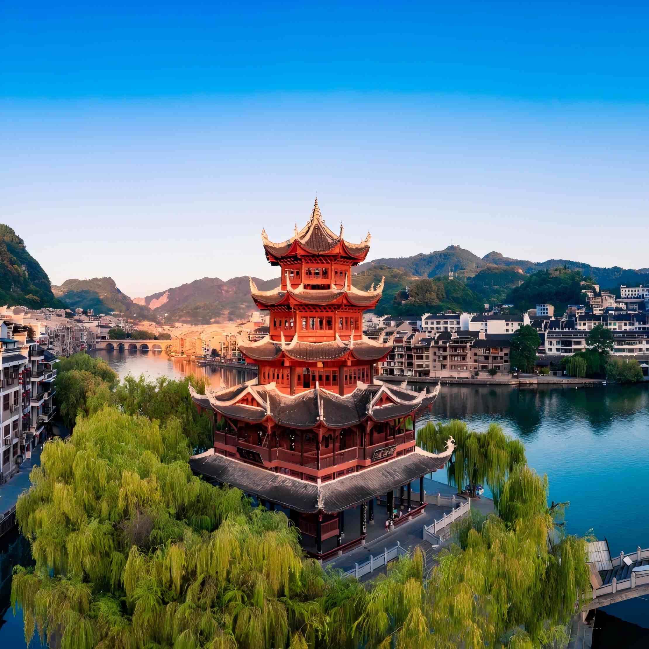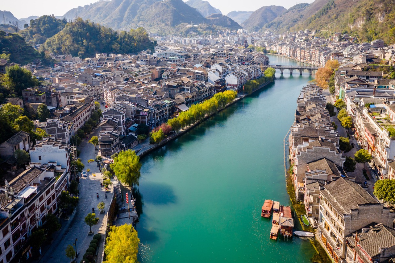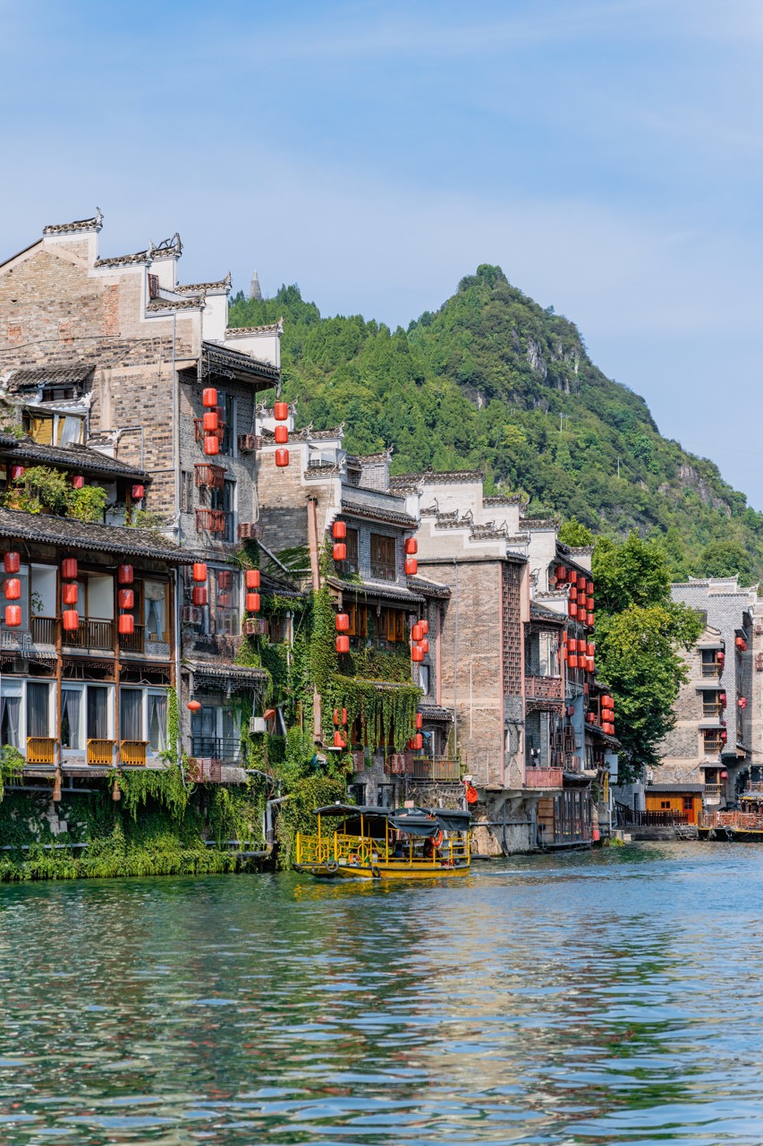 เมืองโบราณเจิ้นหย่วนเป็นเมืองโบราณที่มีประวัติศาสตร์ยาวนานกว่าสองพันปี ถูกโอบอุ้มอย่างอ่อนโยนโดยแม่น้ำอู่หยาง ได้รับสมญานามว่าเป็น “เวนิสแห่งแดนตะวันออก” ที่นี่อบอวลด้วยกลิ่นอายโบราณอันเงียบสงบ คุณสามารถเดินทอดน่องไปตามตรอกหินสีครามของ “ตรอกคดโค้ง” ค้นหาเรื่องราวของเรือนโบราณอันเก่าแก่; ขึ้นสู่เขาฉากศิลา ชมทัศนียภาพเมืองโบราณทั้งเมืองที่มีผังคล้ายสัญลักษณ์ไท่จี๋ได้อย่างเต็มตา หรือเลือกนั่งเรือล่องแม่น้ำยามค่ำคืน ชมแสงไฟสองฝั่งสะท้อนผืนน้ำ ประหนึ่งท่องอยู่ในบทกวี อย่าลืมลิ้มลองปลาซุปเปรี้ยว ให้ปลายลิ้นได้จดจำของขวัญอันเป็นเอกลักษณ์จากแดนเฉียนตะวันออกเฉียงใต้แห่งนี้ เมืองโบราณที่หลอมรวมทั้งขุนเขาสายน้ำและอารยธรรมเข้าด้วยกันได้อย่างกลมกลืนแห่งนี้ กำลังรอคอยการมาเยือนของคุณอย่างเงียบงัน เปิดการเดินทางอันสุขสงบที่จะพาคุณข้ามผ่านกาลเวลา