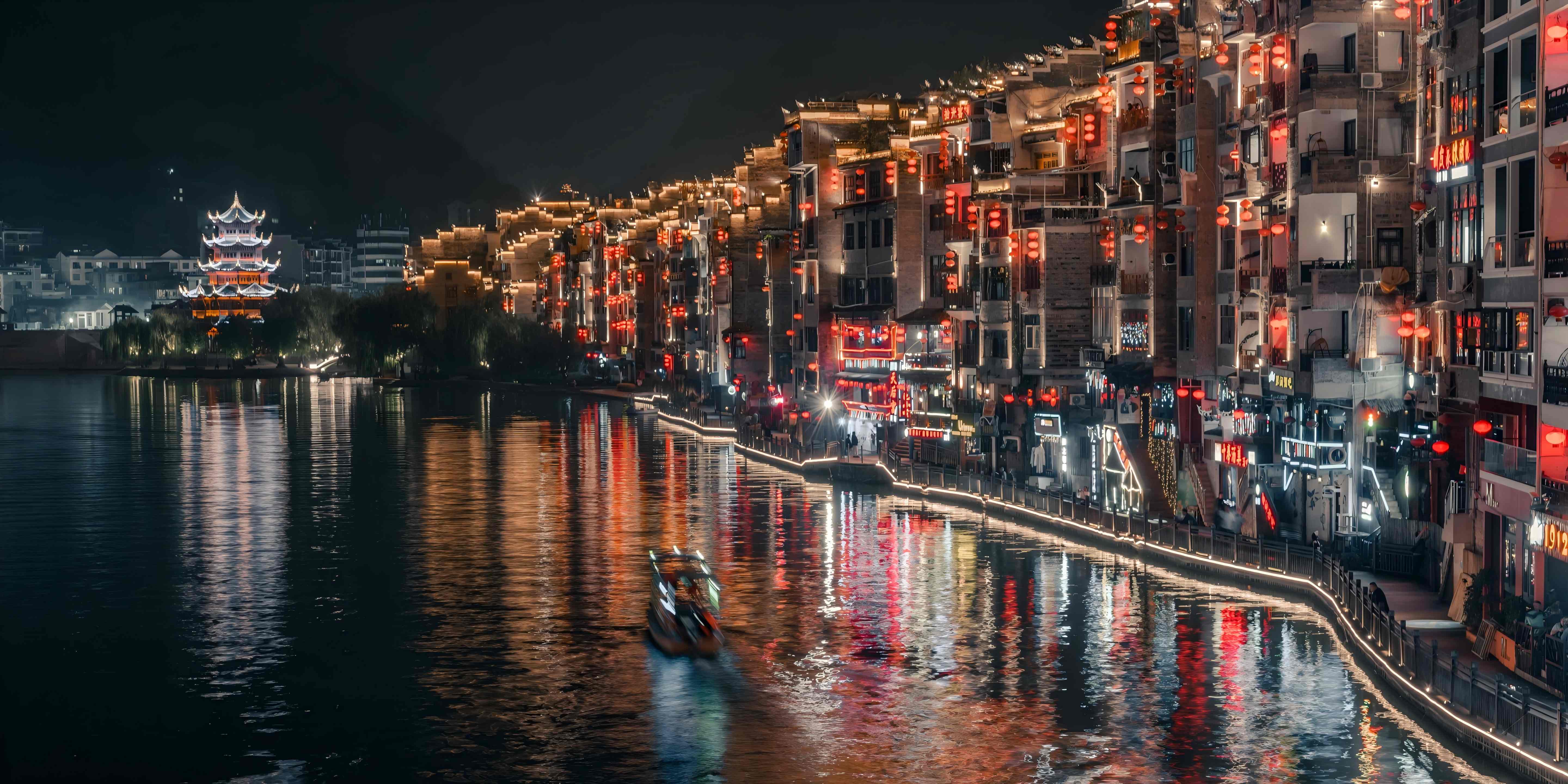 ล่องเรือหลากสีค่อยๆ ออกเดินทาง แหวกผ่านระลอกคลื่นแผ่วพริ้วของแม่น้ำอู่หยาง เรือนยกพื้นอิงเขาที่ปลูกเรียงรายซ่อนตัวอยู่ในยามสนธยา หลังคากระเบื้องสีหม่นและชายคาโค้งม้วน เคล้าภาพสะท้อนของสะพานลมฝนที่พลิ้วไหวไปตามระลอกน้ำ ริมฝั่งยังมีเรื่องราวน่าค้นหาอีกมาก รอให้คุณออกสำรวจ -
