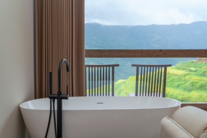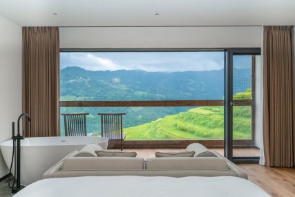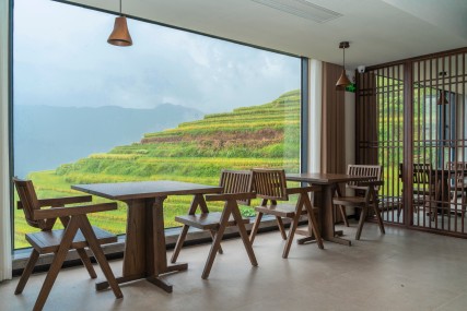 ตั้งอยู่ใจกลางของ Jiabang Terraces ในเขต Congjiang, Qiandongnan, เกสต์เฮาส์ที่โดดเด่นนี้เป็นหนึ่งในที่พักที่เป็นสัญลักษณ์ของภูมิภาคนี้ หน้าต่างบานใหญ่จากพื้นจรดเพดานที่กว้างขวางช่วยกรอบทัศนียภาพของทุ่งนาขั้นบันได เปลี่ยนทิวทัศน์อันงดงามให้กลายเป็นภาพจิตรกรรมธรรมชาติภายในห้องพัก ออกแบบด้วยปรัชญาเฉพาะตัวในการ "ปลูกถ่ายความสูงและประสบการณ์เชิงพื้นที่ของภูมิทัศน์ขั้นบันไดเข้าสู่ภายใน" มอบประสบการณ์ที่ดื่มด่ำกับเสน่ห์ของทุ่งนาขั้นบันไดให้แก่ผู้เข้าพัก ห้องพักมีเตียงนอนสบายและสิ่งอำนวยความสะดวกที่ทันสมัย โดยบางประเภทมีหน้าต่างเบย์และโต๊ะชาสำหรับเพลิดเพลินกับเครื่องดื่มขณะชมคลื่นข้าวที่พลิ้วไหว สิ่งอำนวยความสะดวกฟรีประกอบด้วยร้านอาหารที่มีวิวทิวทัศน์สวยงาม พื้นที่บาร์บีคิวกลางแจ้ง และโซนประสบการณ์การเกษตร ซึ่งมีการเดินชมทุ่งนา ประสบการณ์การปลูกข้าว และคำแนะนำการถ่ายภาพทุ่งนาขั้นบันได อาหารเช้ามีเส้นก๋วยเตี๋ยวข้าวสูตรพิเศษ ข้าวต้ม และขนมปังโฮมเมดจาก Rice Dream Space ซึ่งทั้งหมดทำจากวัตถุดิบออร์แกนิกที่มาจากท้องถิ่น ฤดูกาลที่เหมาะสำหรับการเข้าพักคือเดือนพฤษภาคม-มิถุนายน (ช่วงที่นาข้าวถูกน้ำท่วม) และเดือนกันยายน-ตุลาคม (ช่วงเก็บเกี่ยวข้าว) ซึ่งเป็นโอกาสที่ดีในการนอนพักผ่อนชมพระอาทิตย์ขึ้นหรือนั่งชมเมฆลอยผ่าน