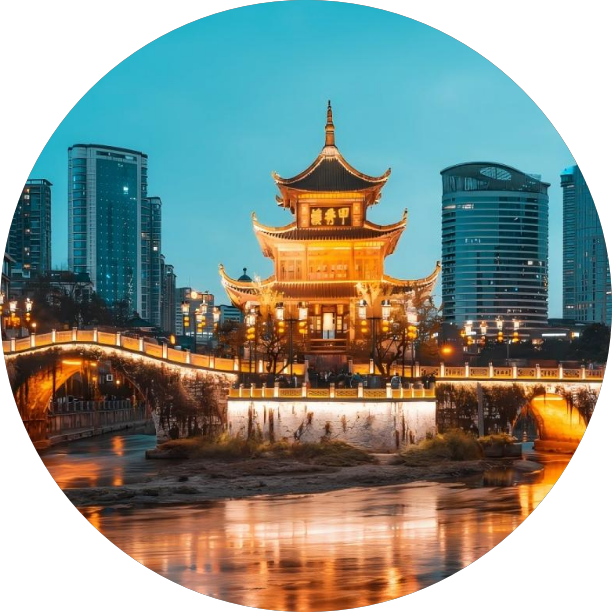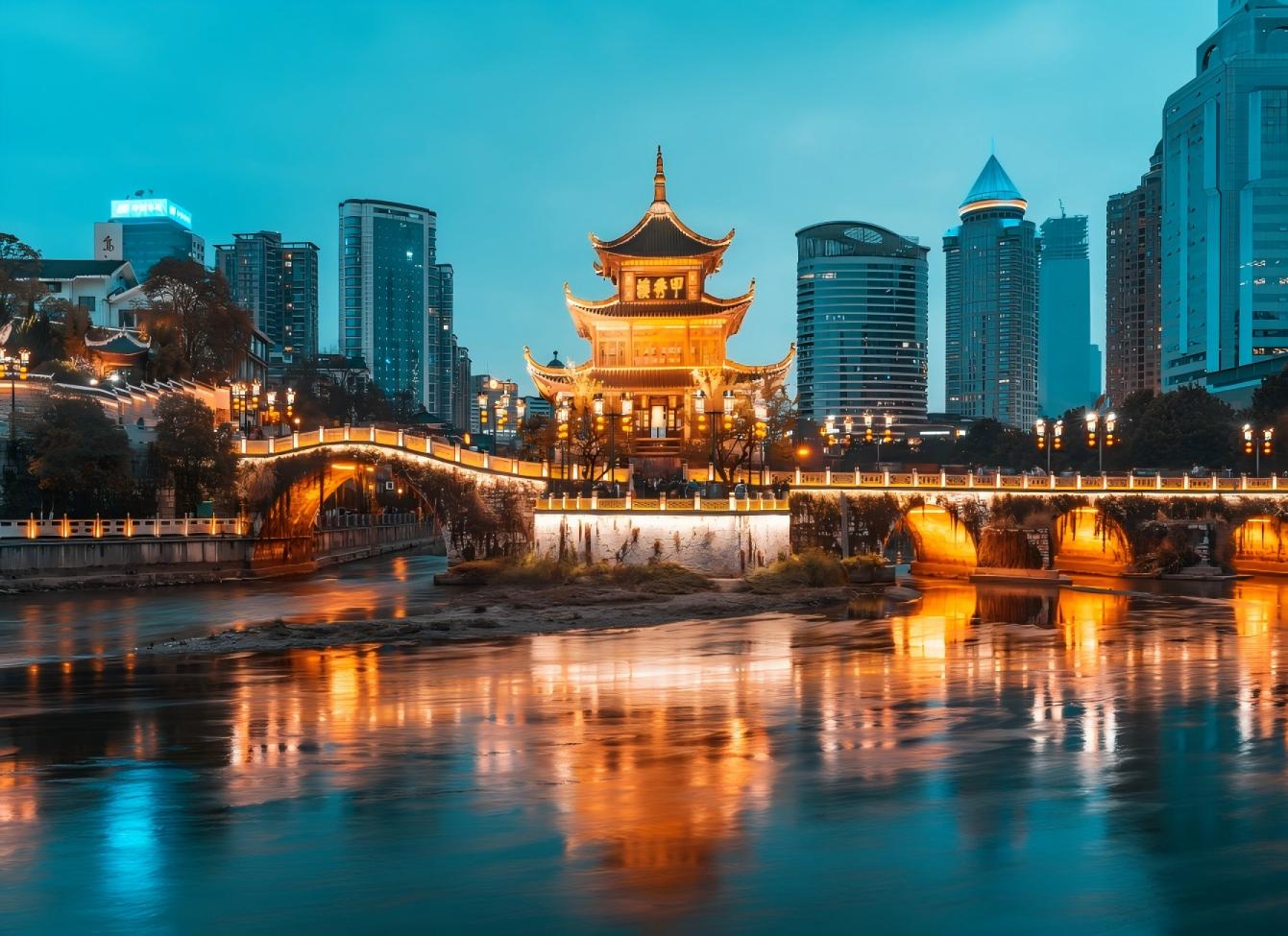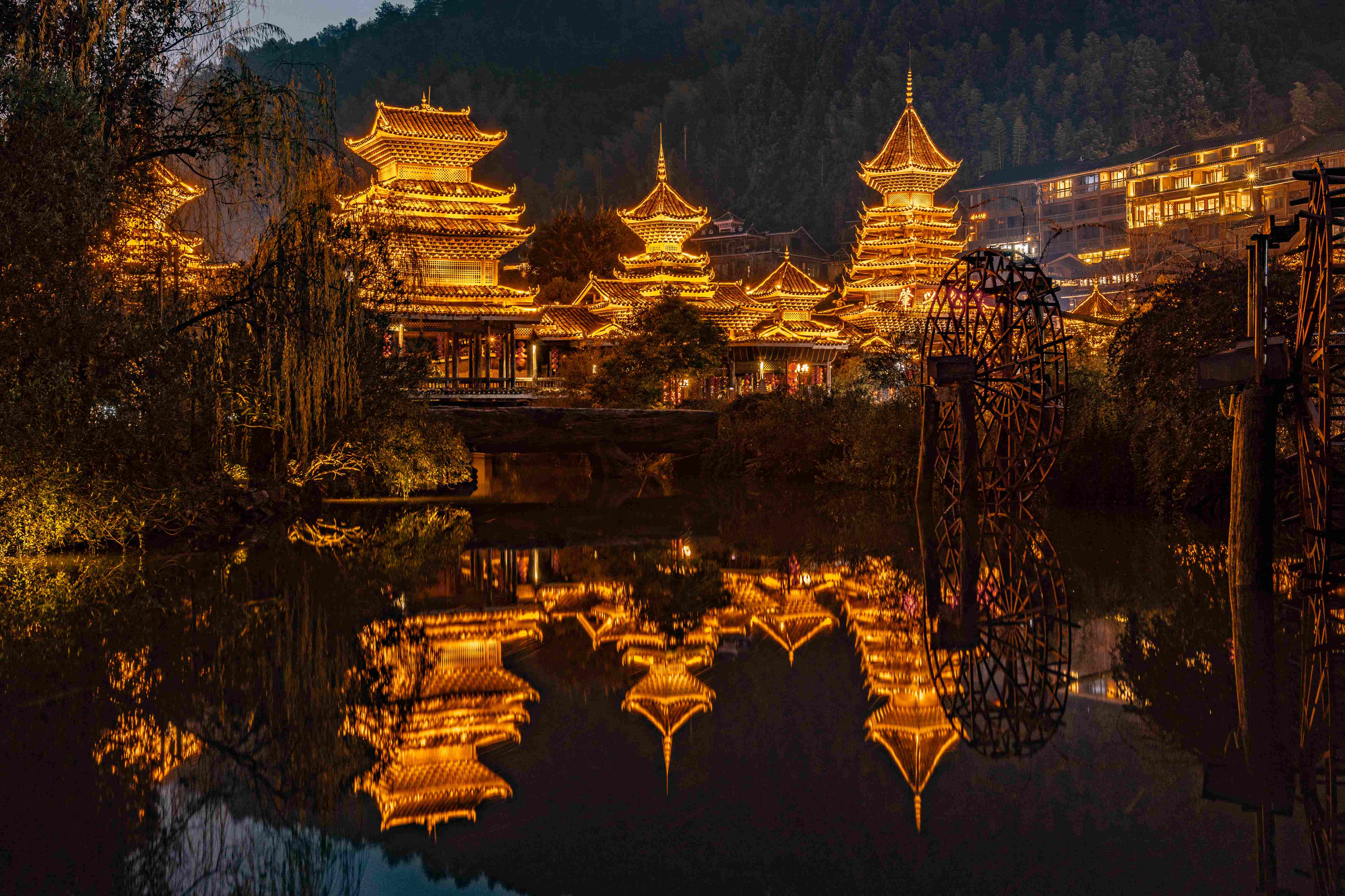 แลนด์มาร์คทางวัฒนธรรมของกุ้ยหยาง ทิวทัศน์ยามค่ำคืนสะท้อนกับแม่น้ำหนานหมิงอย่างวิจิตรตระการตา