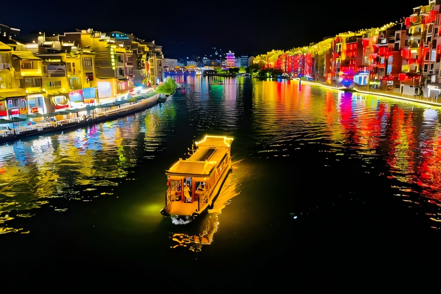 ล่องเรือชมเมืองโบราณเจิ้นหย่วนยามค่ำคืน