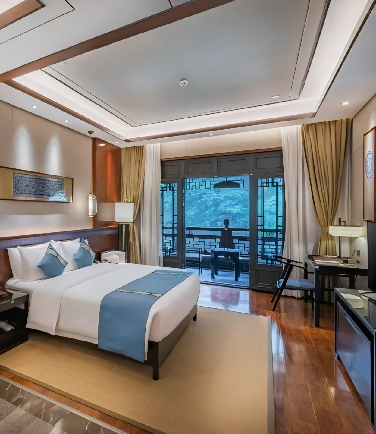 ตั้งอยู่ใจกลางอำเภอจี้จิน และสร้างขึ้นตามมาตรฐานห้าดาว โรงแรมแห่งนี้ตั้งอยู่ติดกับอุทยานธรณีโลกถ้ำจี้จิน ซึ่งใช้เวลาเดินทางโดยรถยนต์ประมาณ 15 นาทีจากแหล่งท่องเที่ยวที่สวยงาม โรงแรมแห่งนี้ถือเป็นตัวเลือกที่ดีที่สุดสำหรับนักเดินทางที่พิถีพิถันต้องการสำรวจทิวทัศน์ของภูเขาหินปูน การออกแบบของโรงแรมผสมผสานองค์ประกอบทางวัฒนธรรมท้องถิ่นเข้ากับความหรูหราร่วมสมัยอย่างไร้รอยต่อ โดยมีห้องพักหรูหรามากกว่าหนึ่งร้อยห้องให้เลือก ห้องพักบางประเภทมีวิวพาโนรามาของทิวทัศน์โดยรอบ ในขณะที่ทุกห้องพักมีสิ่งอำนวยความสะดวกอัจฉริยะ เตียงนอนที่สบาย และห้องน้ำในตัว เพื่อให้มั่นใจถึงการเข้าพักที่ยอดเยี่ยม ร้านอาหารซิกเนเจอร์ของโรงแรมเชี่ยวชาญในอาหารกวางสีและรสชาติท้องถิ่น โดยคัดสรรวัตถุดิบจากภูมิภาคเป็นส่วนใหญ่เพื่อส่งมอบรสชาติที่แท้จริงอย่างแท้จริง โรงแรมมีสิ่งอำนวยความสะดวกครบครัน อาทิ ศูนย์ประชุมขนาดใหญ่ ห้องจัดเลี้ยง และสิ่งอำนวยความสะดวกเพื่อสุขภาพ รองรับการจัดงานเลี้ยงรับรองทางธุรกิจและกิจกรรมท่องเที่ยวหมู่คณะ ด้วยทำเลที่ตั้งที่สะดวกสบาย สามารถเดินทางโดยรถยนต์ประมาณ 30 นาทีจากสถานีรถไฟความเร็วสูงจี้จิน และด้วยมาตรฐานการบริการระดับพรีเมียม โรงแรมแห่งนี้จึงกลายเป็นมาตรฐานแห่งการพักผ่อนหรูหราในอำเภอจี้จิน