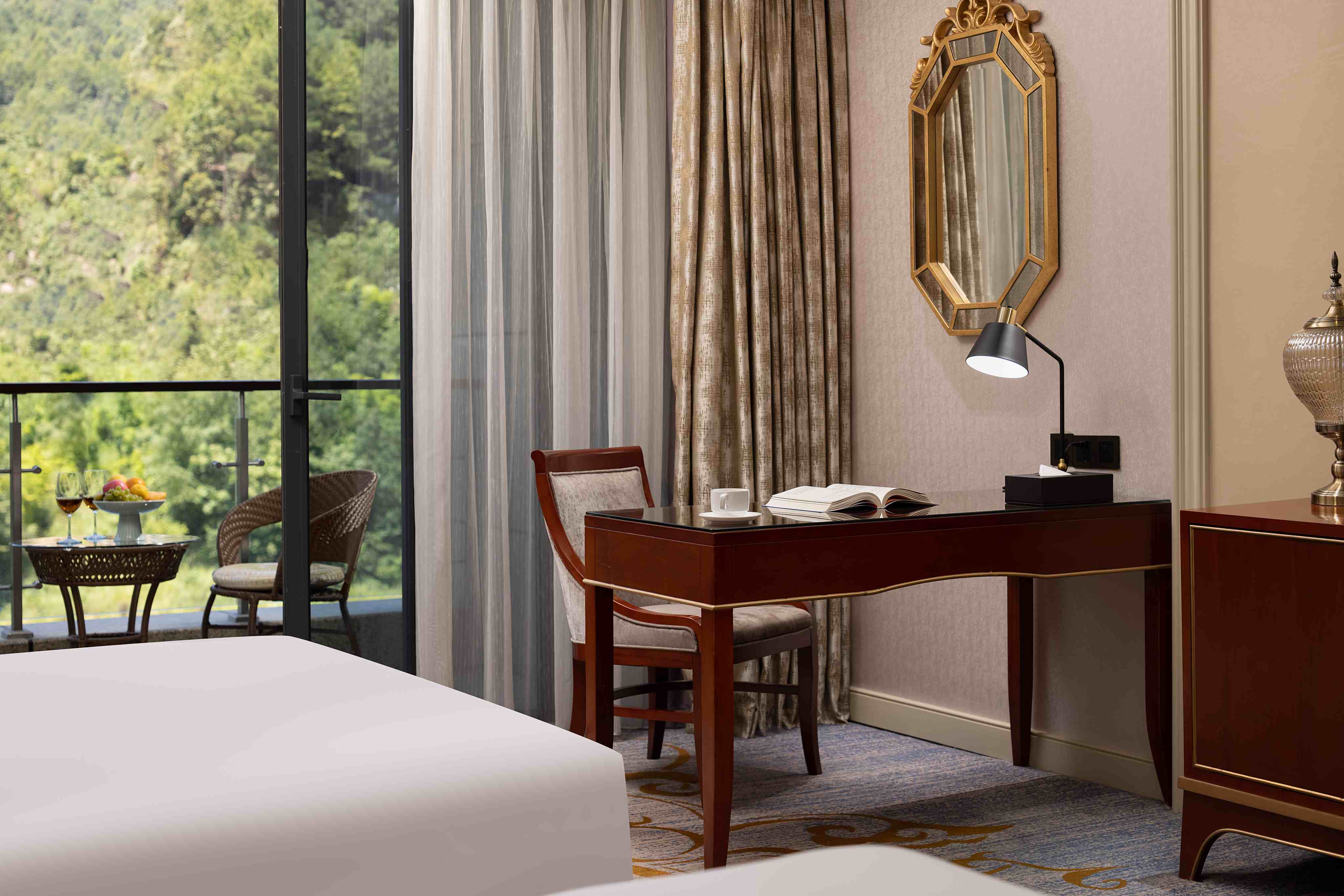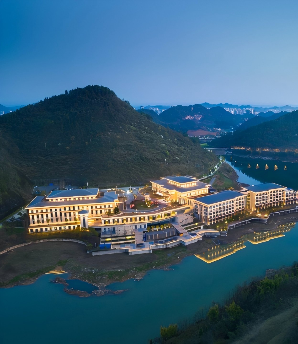 ตั้งอยู่ติดกับอ่างเก็บน้ำซานบา ในเขตใหม่ซีปู้ เมืองจุนอี้ โรงแรมรีสอร์ทสไตล์ยุโรปแห่งนี้เปิดให้บริการในปี 2016 และสร้างขึ้นตามมาตรฐานระดับห้าดาว โรงแรมแห่งนี้ตั้งอยู่ท่ามกลางขุนเขาสามด้านและสร้างขึ้นริมทะเลสาบ มอบทัศนียภาพอันงดงามตระการตาของทะเลสาบมรกต บรรยากาศโดยรอบที่เขียวชอุ่มอุดมสมบูรณ์ มีระดับไอออนลบสูงเป็นพิเศษตลอดทั้งปี จนได้รับสมญานามว่าเป็นบาร์ออกซิเจนธรรมชาติ สถาปัตยกรรมสไตล์ยุโรปผสมผสานอย่างลงตัวกับสวนภูมิทัศน์ที่จัดแต่งอย่างสวยงาม พร้อมห้องพักวิวสวย 19 ห้องกระจายอยู่ทั่วบริเวณ บางห้องมีระเบียงชมวิวและโต๊ะน้ำชาสำหรับพักผ่อน ให้แขกได้เพลิดเพลินกับทิวทัศน์ทะเลสาบและภูเขาอันกว้างไกลเพียงปลายนิ้วสัมผัส สิ่งอำนวยความสะดวกประกอบด้วยร้านอาหารสไตล์กุ้ยโจว (พร้อมห้องอาหารส่วนตัว 9 ห้อง), สระว่ายน้ำระบบน้ำอุ่น, ฟิตเนสเซ็นเตอร์, และห้องเล่นเกม อาหารเช้าให้บริการอาหารท้องถิ่นพิเศษ พร้อมบริการที่เอาใจใส่ ตั้งอยู่ห่างจากสถานีรถไฟความเร็วสูงจุนอี้เพียง 20 นาทีโดยรถยนต์, ประมาณ 40 นาทีจากสนามบินซินโจว, และประมาณ 30 นาทีจากสถานที่ประชุมจุนอี้ เป็นจุดหมายที่เหมาะสำหรับการพักผ่อนทางธุรกิจ, วันหยุดเพื่อสุขภาพ, และการพักผ่อนกับครอบครัว