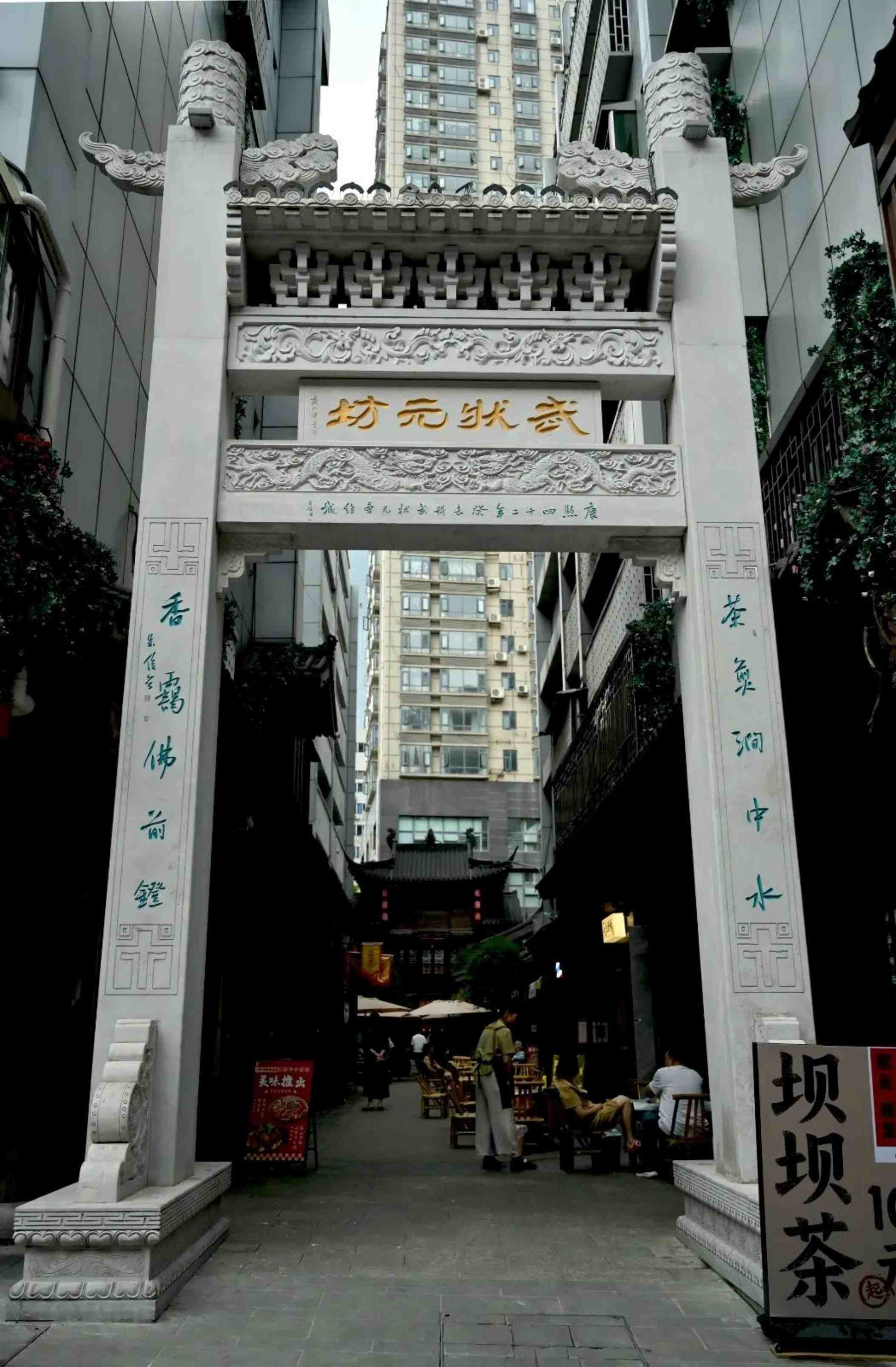 ถนนประวัติศาสตร์แห่งนี้ตั้งชื่อตามเจ้า ไว่เฉิง แชมป์ศิลปะการต่อสู้คนแรกของมณฑลกุ้ยโจวในสมัยราชวงศ์ชิง เป็นพยานถึงมรดกอันรุ่งเรืองของครอบครัวที่สร้าง "หนึ่งแชมป์ สองนักปราชญ์ชั้นสูง และสามบัณฑิตราชสำนัก" ในปีที่ 42 แห่งรัชสมัยคังซี ความสำเร็จอันเป็นตำนานของเจ้า ไว่เฉิง ที่ "พิชิตทั้งการสอบราชสำนักและการแข่งขันวรรณกรรม" ส่องประกายเจิดจ้าในหน้าประวัติศาสตร์ ตลอดเส้นทางหินกรวดยาว 213 เมตร ศาลาแชมป์เปี้ยนตั้งตระหง่านอย่างสง่างาม ขณะที่ซุ้มประตูแชมป์เปี้ยนศิลปะการต่อสู้สูงตระหง่านอย่างสง่าผ่าเผย ในเวลากลางวัน ผลงานทางวัฒนธรรมและมรดกที่จับต้องไม่ได้สะท้อนผ่านถนนหนทาง; ในเวลากลางคืน โคมไฟสานกันเป็นผืนผ้าแห่งสวรรค์ ที่ซึ่งความงดงามโบราณและสมัยใหม่โอบกอดกันอย่างกลมกลืน